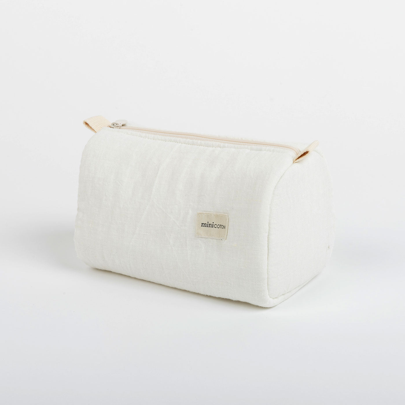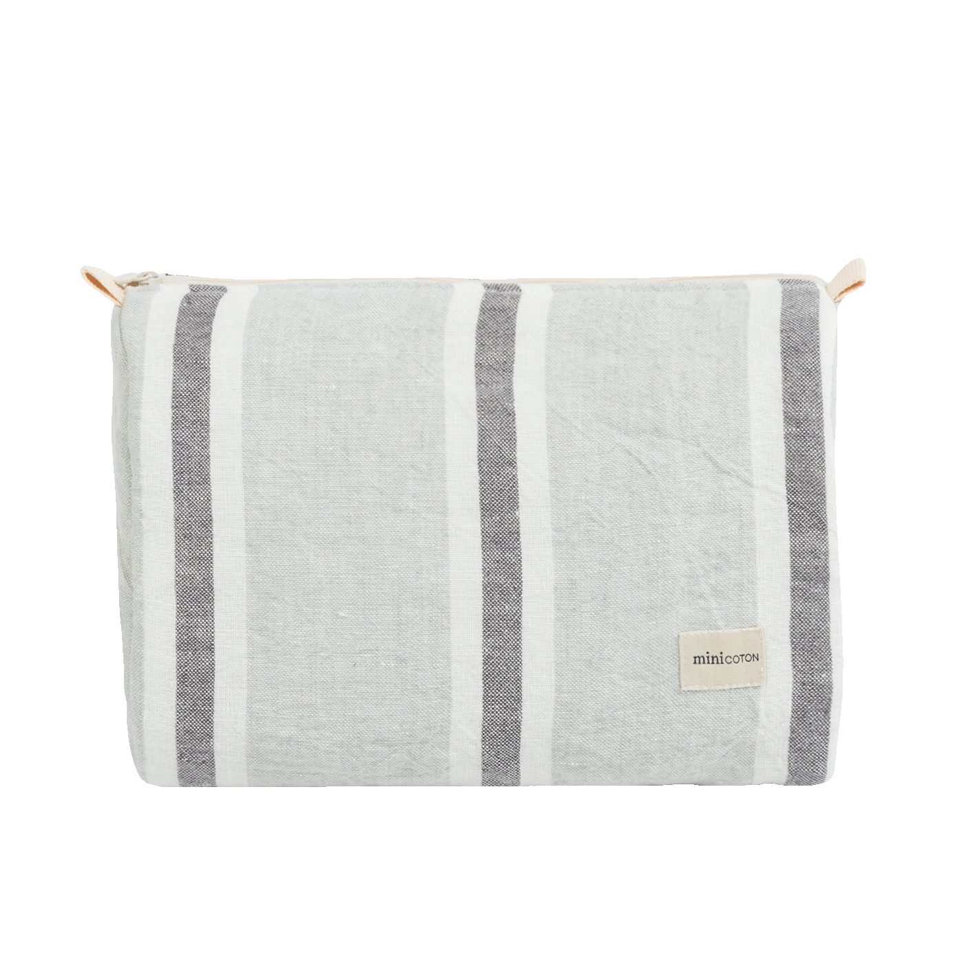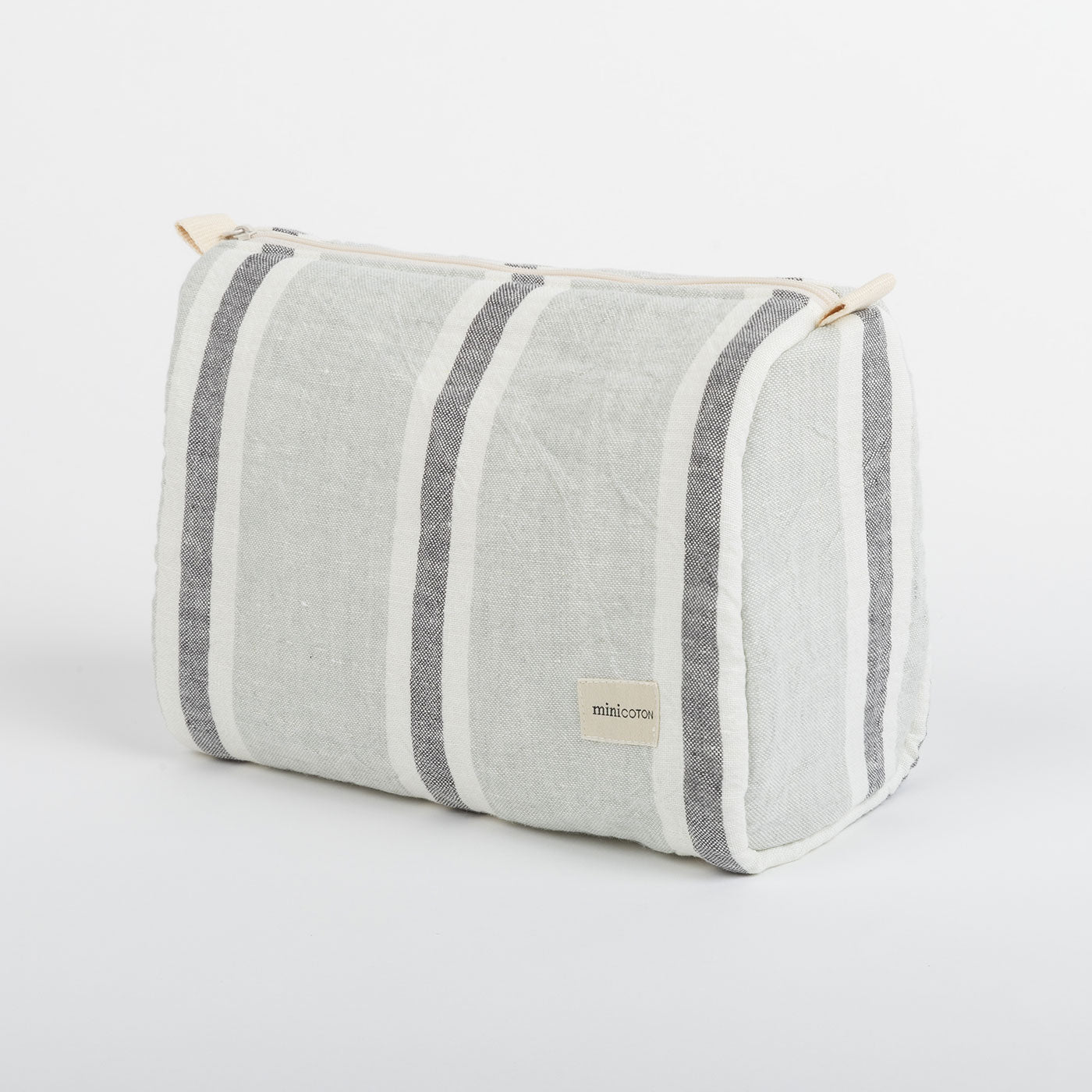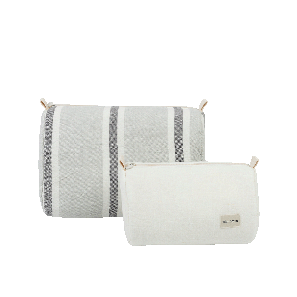 Questo set è composto da due necessaire, uno Big a righe Rice e uno Small in tinta unita Talc. Sono imbottiti, quindi le cose all'interno sono protette. Si chiudono con cerniera.