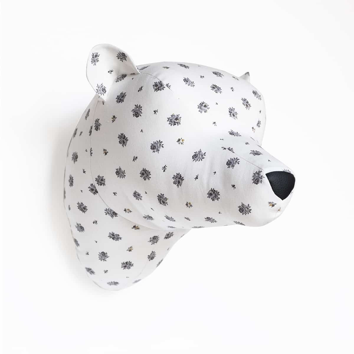 Testa di orso polare in lana 100% per decorare con un tocco originale qualsiasi spazio.