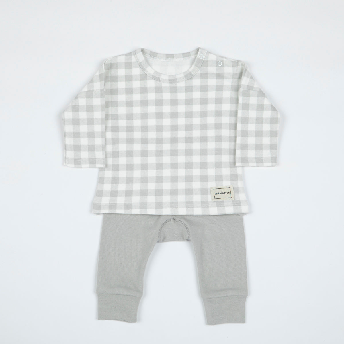 Top in tessuto di maglia di cotone in Vichy nuvola. Ideale da abbinare al jogging color nuvola per creare un total look.