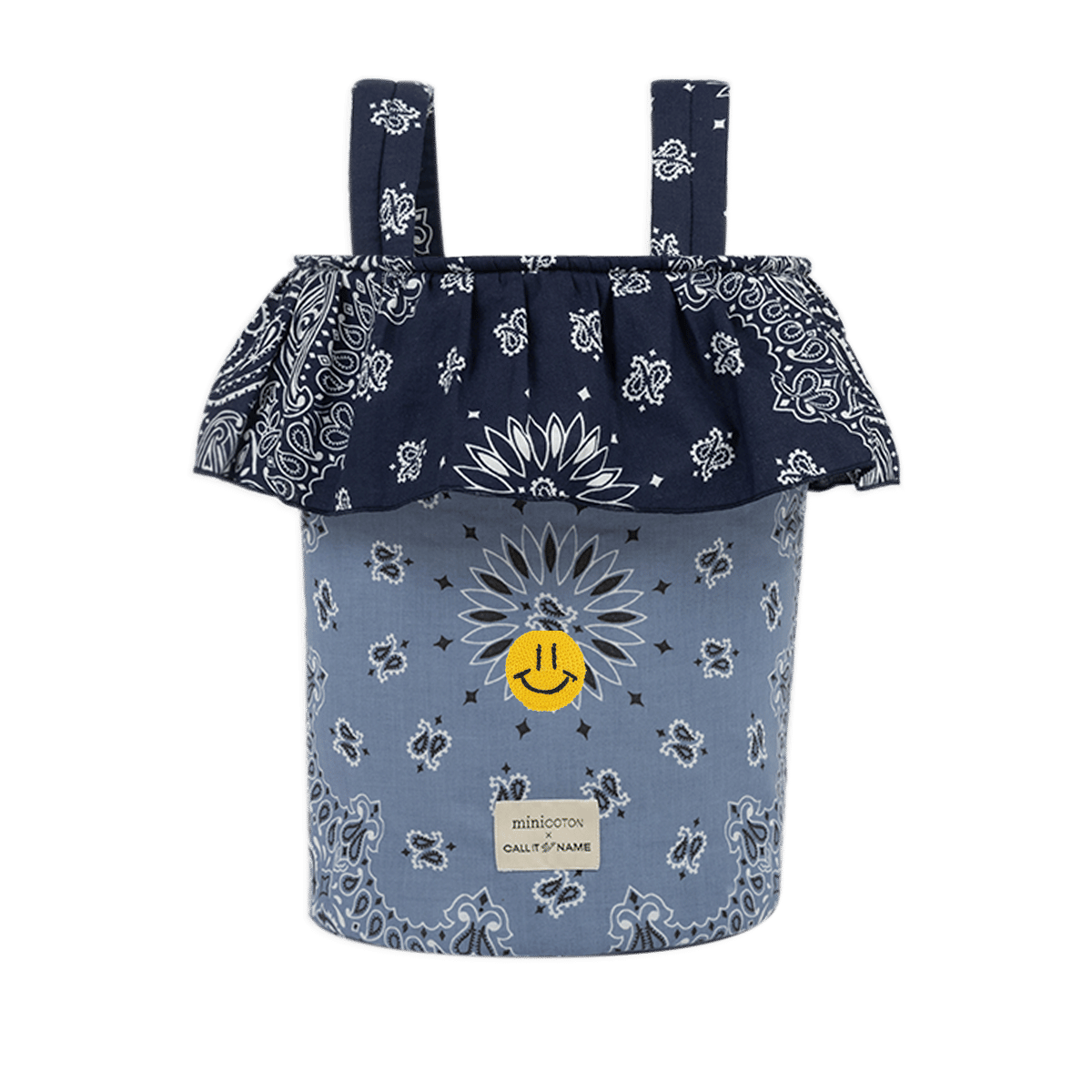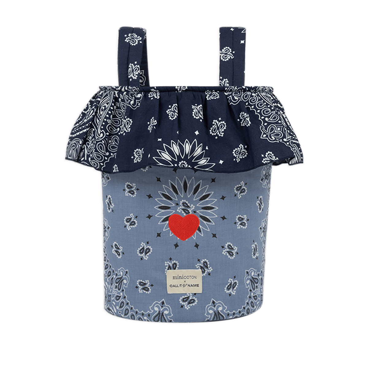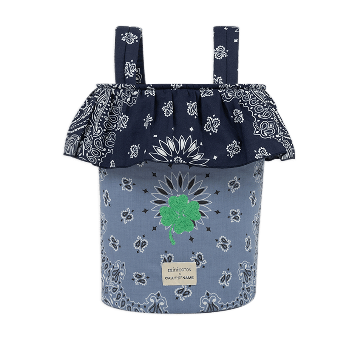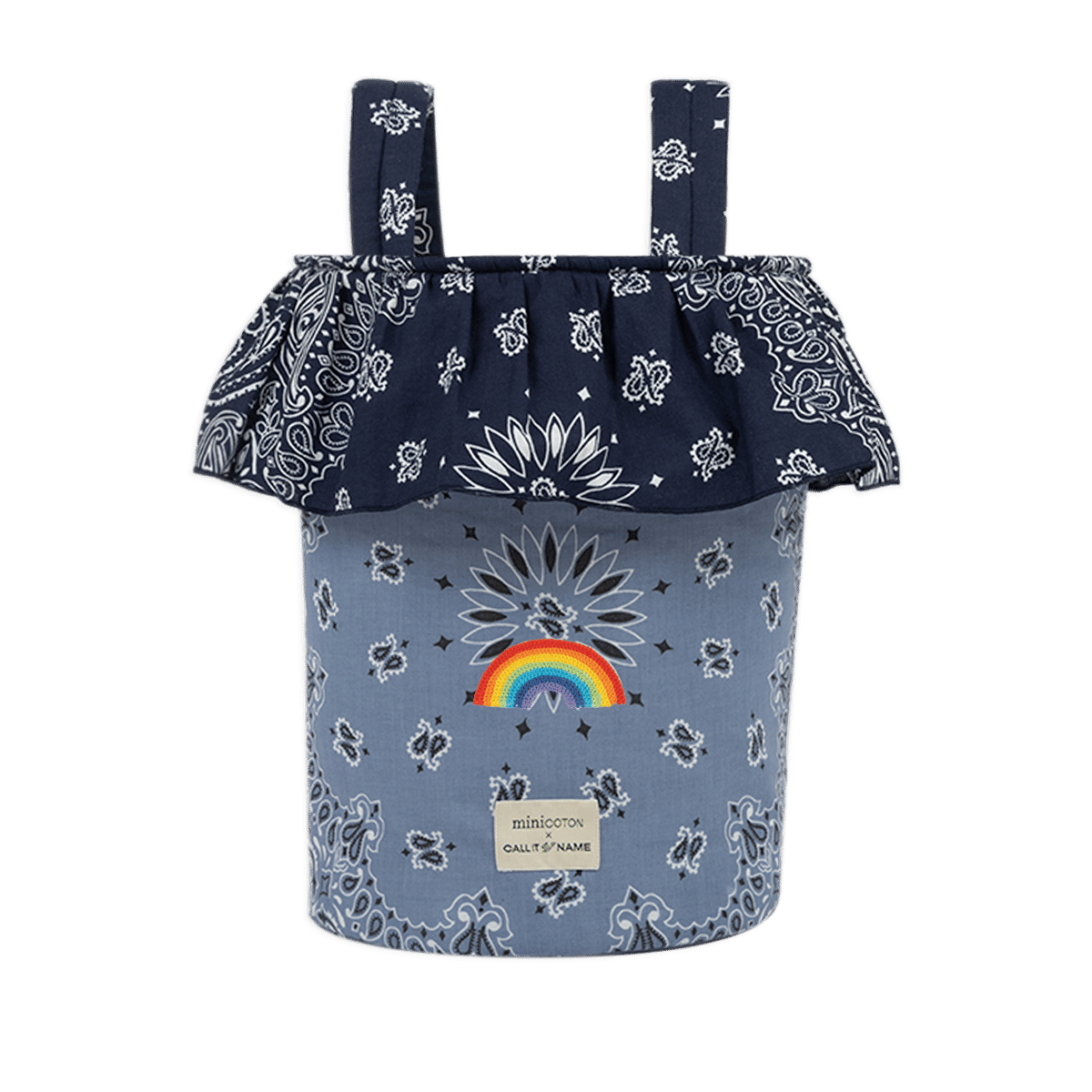Una bolsa muy especial por sus asas quita y pon, que adoptan diferentes posiciones para que sea perfecta como bolso de mano o bolsa para el cochecito. Con solo dos clics, tu bolsa cambia de formato para acompañarte de la mejor manera. Se cierra de manera muy práctica con sus cuerdas en la parte superior, como una bolsa de la merienda. Tiene gran capacidad y su interior es de tejido repelente al agua y a las manchas, fácil de lavar con un paño húmedo. Confeccionada con bandanas hechas en USA de 100% algodón.