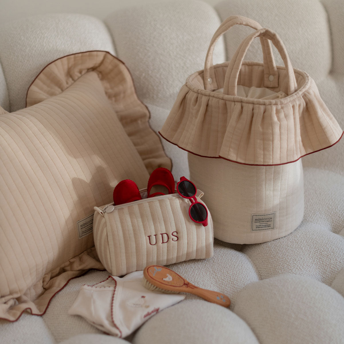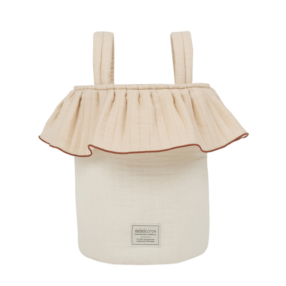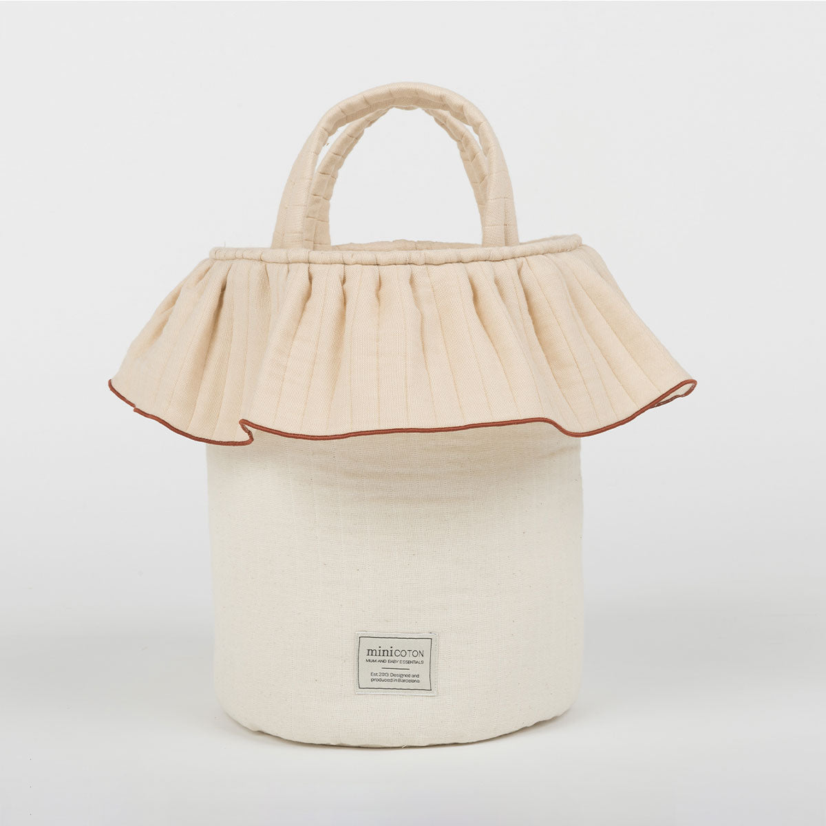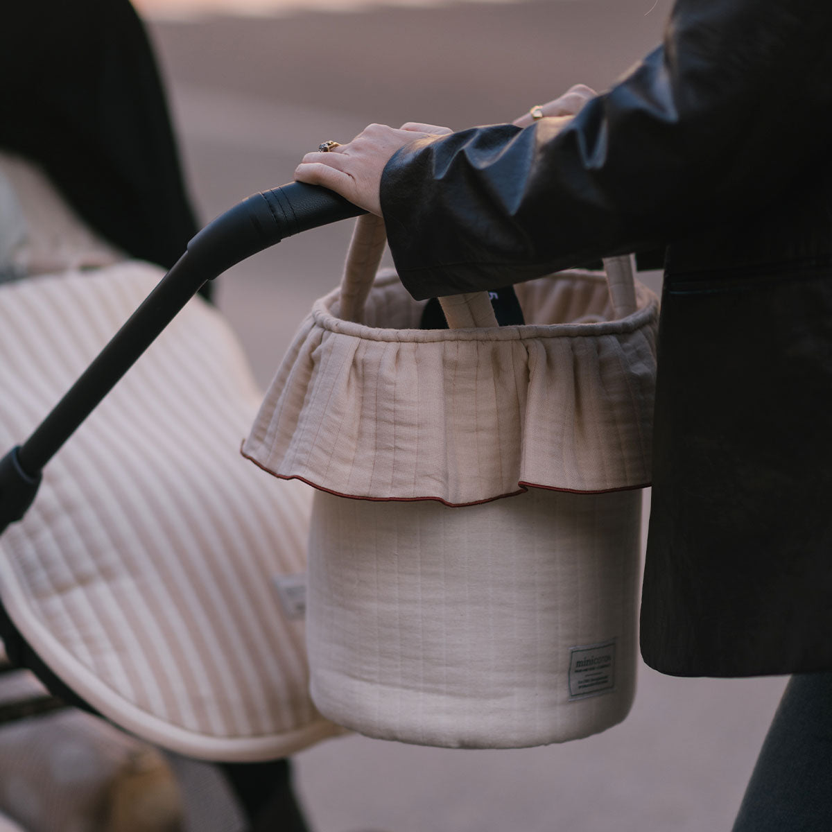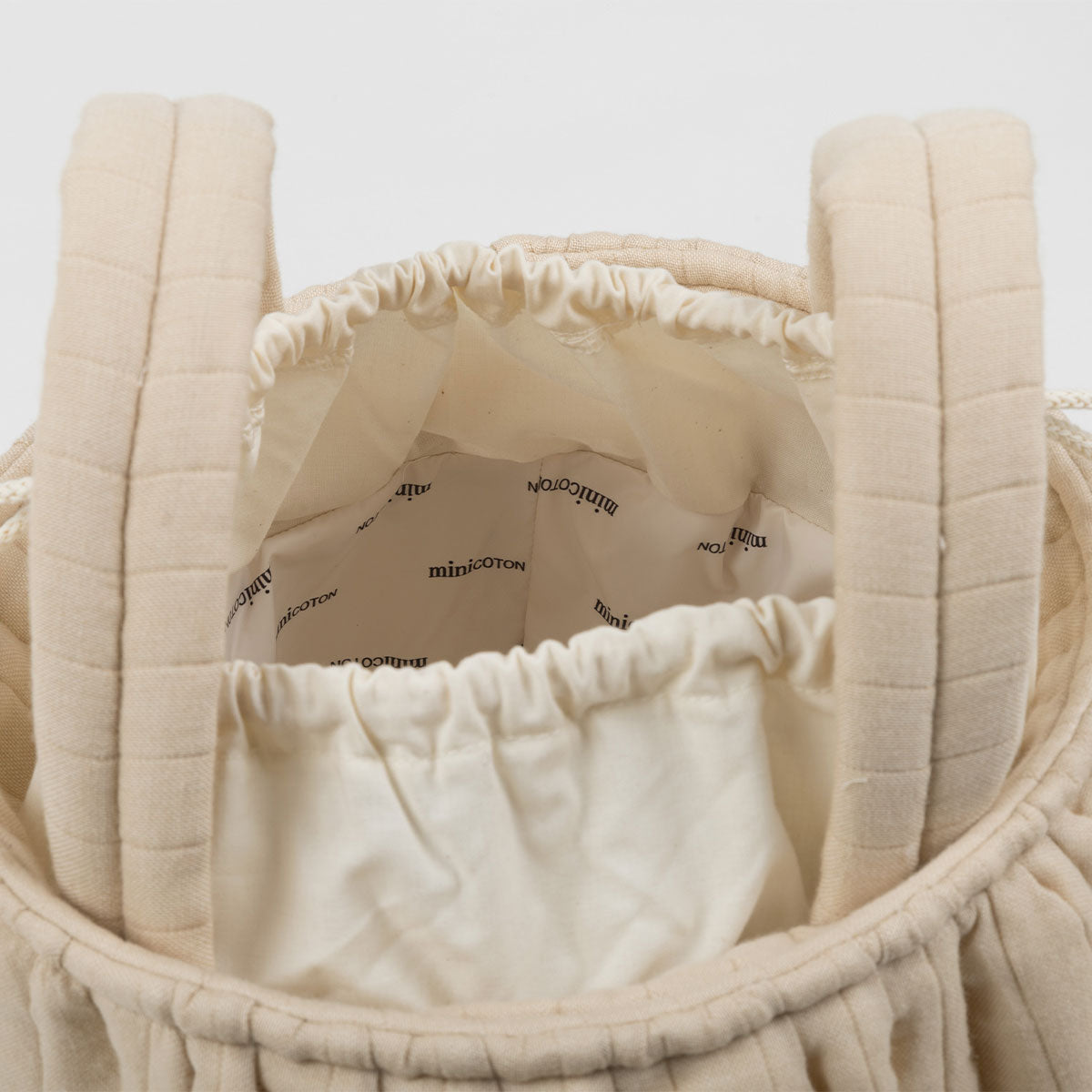 Una bolsa muy especial por sus asas quita y pon, que adoptan diferentes posiciones para que sea perfecta como bolso de mano o bolsa para el cochecito. Con solo dos clicks tu bolsa cambia de formato para acompañarte de la mejor manera. Se cierra de manera muy práctica con sus cuerdas en la parte superior, como una bolsa de la merienda. Tiene gran capacidad y su interior es de tejido repelente al agua y a las manchas, fácil de lavar con un paño húmedo. El tejido es muy especial, diseñado para nuestra colección Essentials. Se caracteriza por ser acolchadito y presentar irregularidades en su tejiduría que lo hace desenfadado y con estilo. 100% Oeko tex 100 y BCI.
