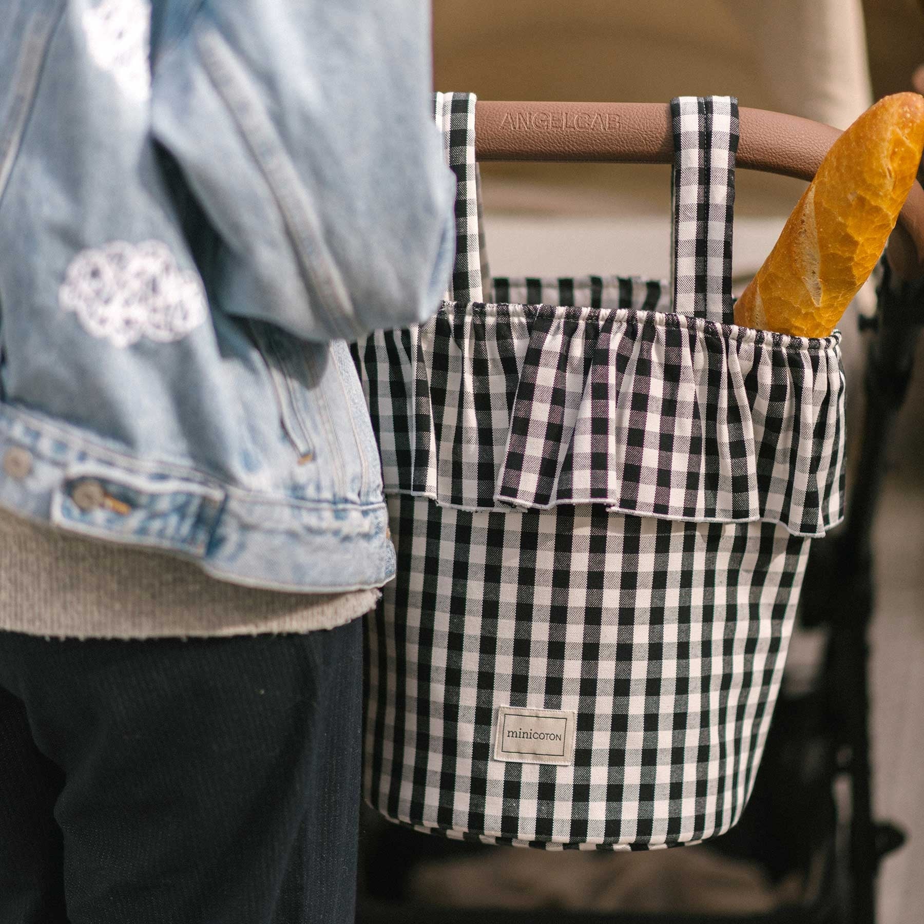 Una bolsa muy especial por sus asas quita y pon, que adoptan diferentes posiciones para que sea perfecta como bolso de mano o bolsa para el cochecito. Con solo dos clicks tu bolsa cambia de formato para acompañarte de la mejor manera. Se cierra de manera muy práctica con sus cuerdas en la parte superior, como una bolsa de la merienda. Tiene gran capacidad y su interior es de tejido repelente al agua. El exterior es 100% algodón.