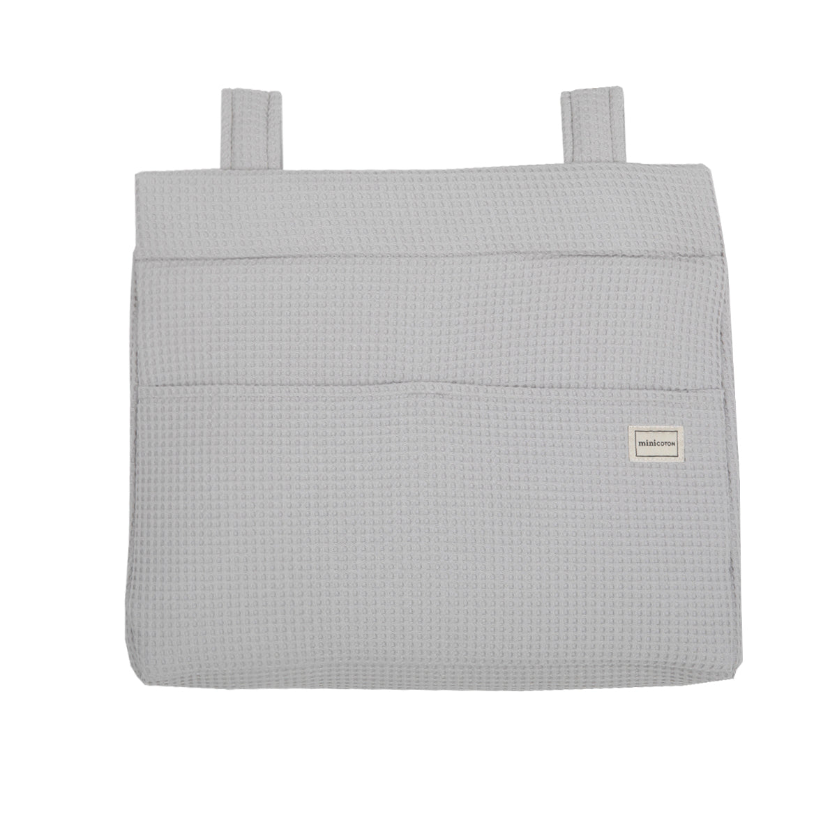 Nuestra bolsa Icon para el cochecito es muy ligera. Está acolchada, por lo que los productos de su interior están protegidos. Tiene el interior de rizo con dorso impermeable para que, si se vuelca algún líquido, empape y no traspase. Se sujeta al cochecito con dos cintas que se abrochan con botón de click. También tiene una bandolera quita y pon, que también se ajusta con botón de click, para llevarla cómodamente al hombro o como bolso cruzado. Se cierra con cremallera tanto la parte superior, como su bolsillo delantero.