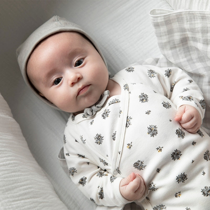 Esta capota de la colección NEWBORN es reversible. Por un lado, está hecha de un suave punto de algodón de textura melocotón y, por el otro lado, de rizo. Disponible en los cuatro colores de la colección: crudo, rosa, nube y musgo. Talla 0-3 meses.