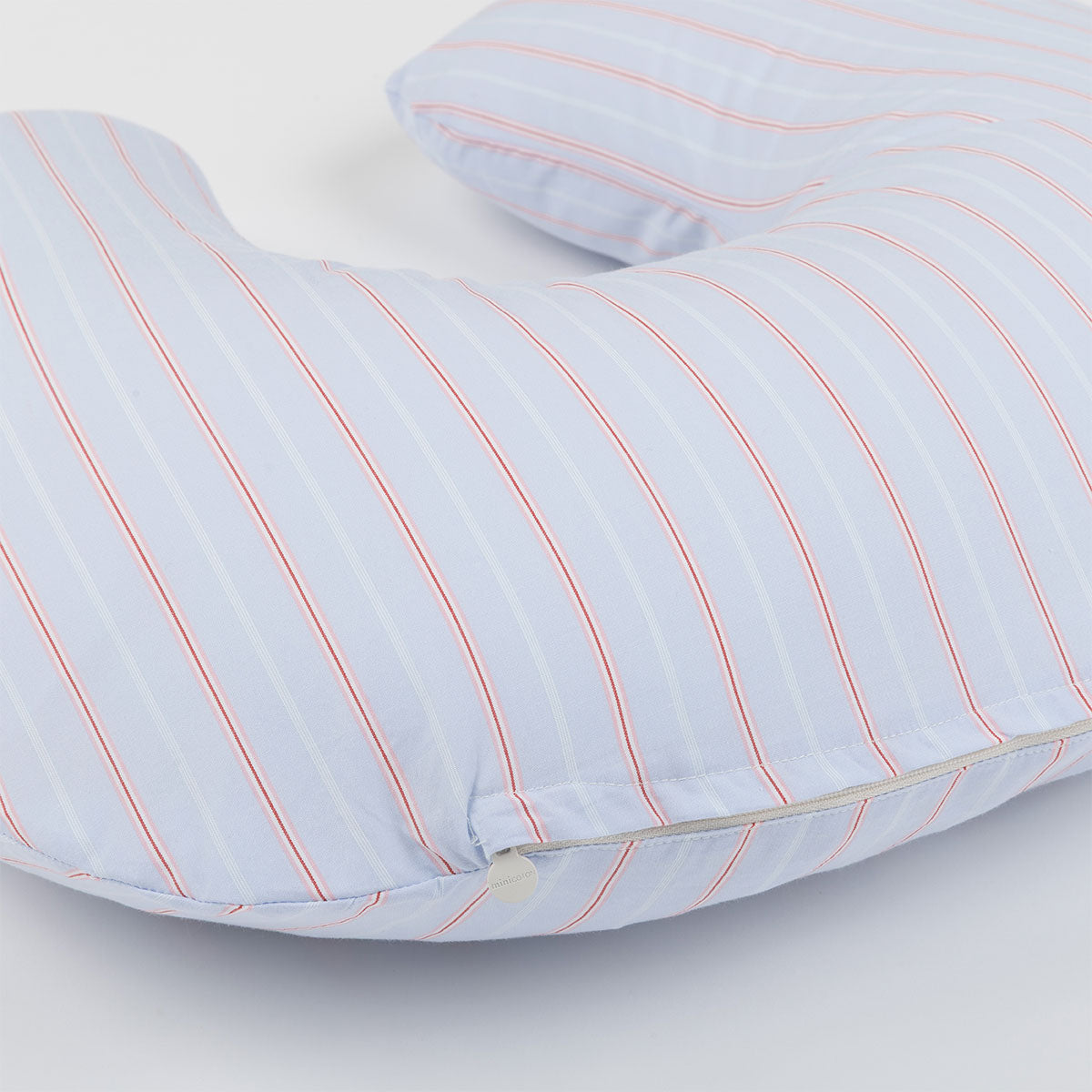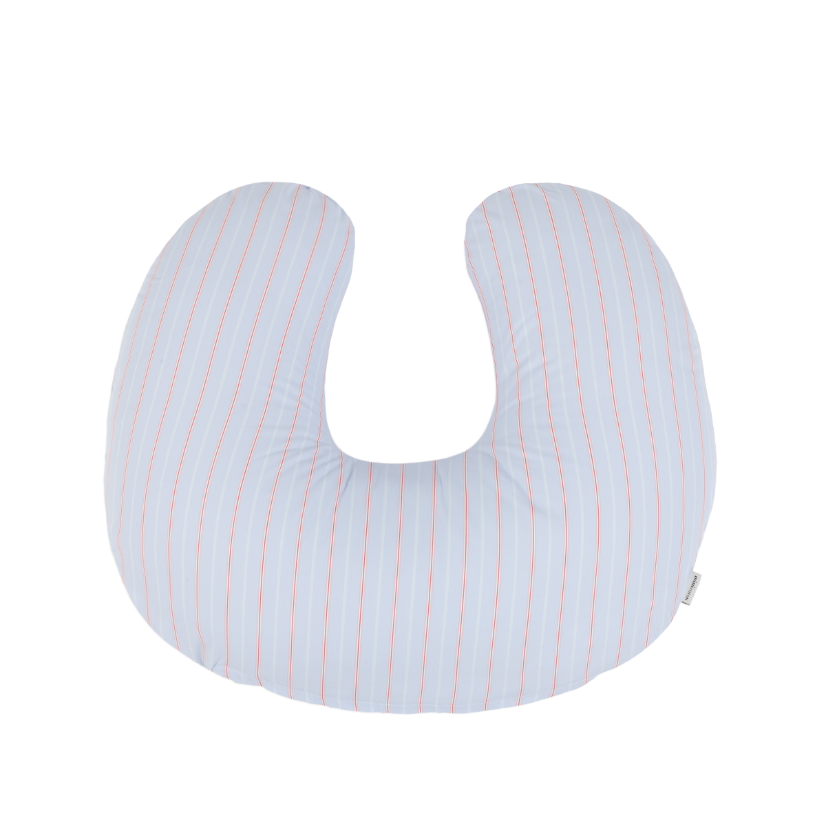 El cojín de lactancia ayuda y favorece la postura para dar el pecho o el biberón. Se coloca el cojín en la cintura de la mamá y se ajusta al contorno del abdomen para colocar los brazos encima y así estar más cómoda y mantener la espalda recta y descansada, consiguiendo que el bebé quede a la altura y postura correcta, favoreciendo la succión.