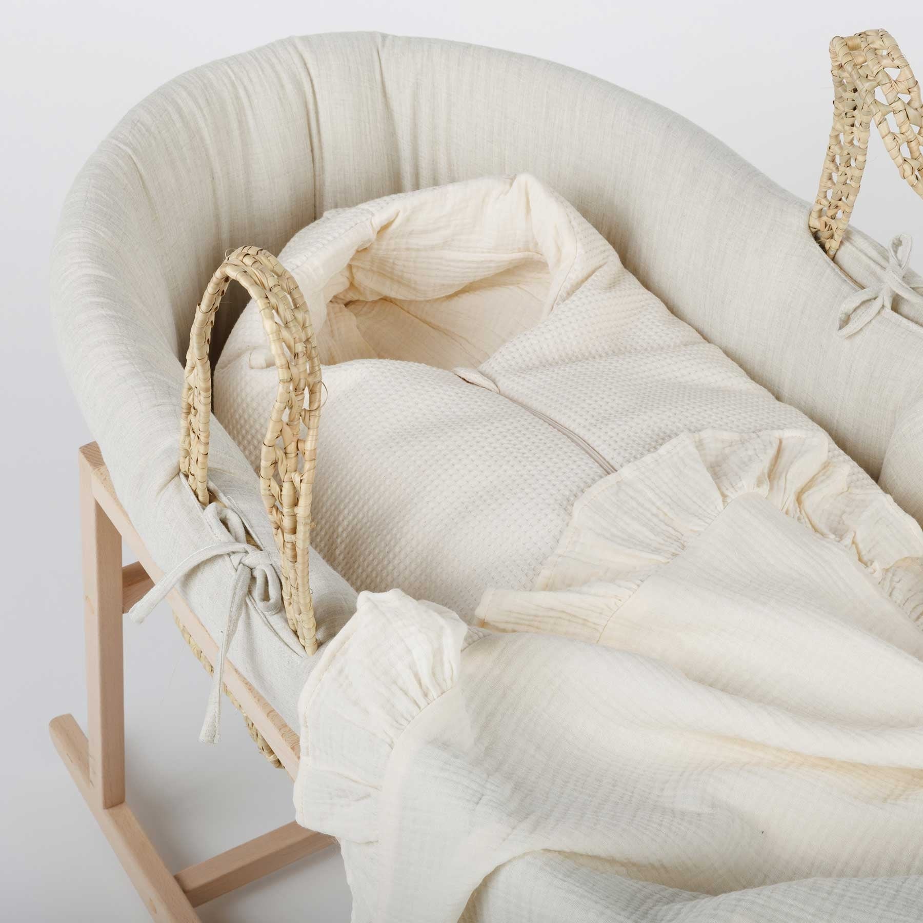 Este es nuestro cuco. Minimal. Su acolchadita vestidura hará sentir el bebé en las nubes. Ideal para combinar con nuestros sacos oval, arrullos o mantitas gofre al tono. Muy práctico para los primeros meses de vida. Los bebés se sienten confortables y recogidos, facilitándoles el descanso.