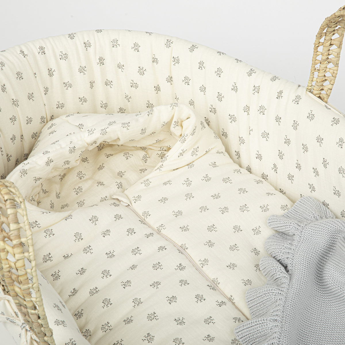 Este es nuestro cuco minimal. Su acolchadita vestidura hará sentir al bebé en las nubes. Ideal para combinar con nuestros sacos oval, arrullos o mantitas gofre al tono. Muy práctico para los primeros meses de vida. Los bebés se sienten confortables y recogidos, facilitándoles el descanso.