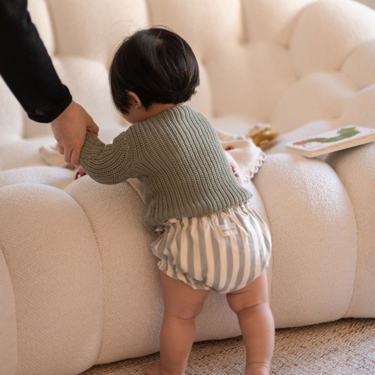 Sin costuras. Reversible. Con gomitas blanditas. Talla 0-12m, pero por sus características se ajusta bien y dan mucha talla.
