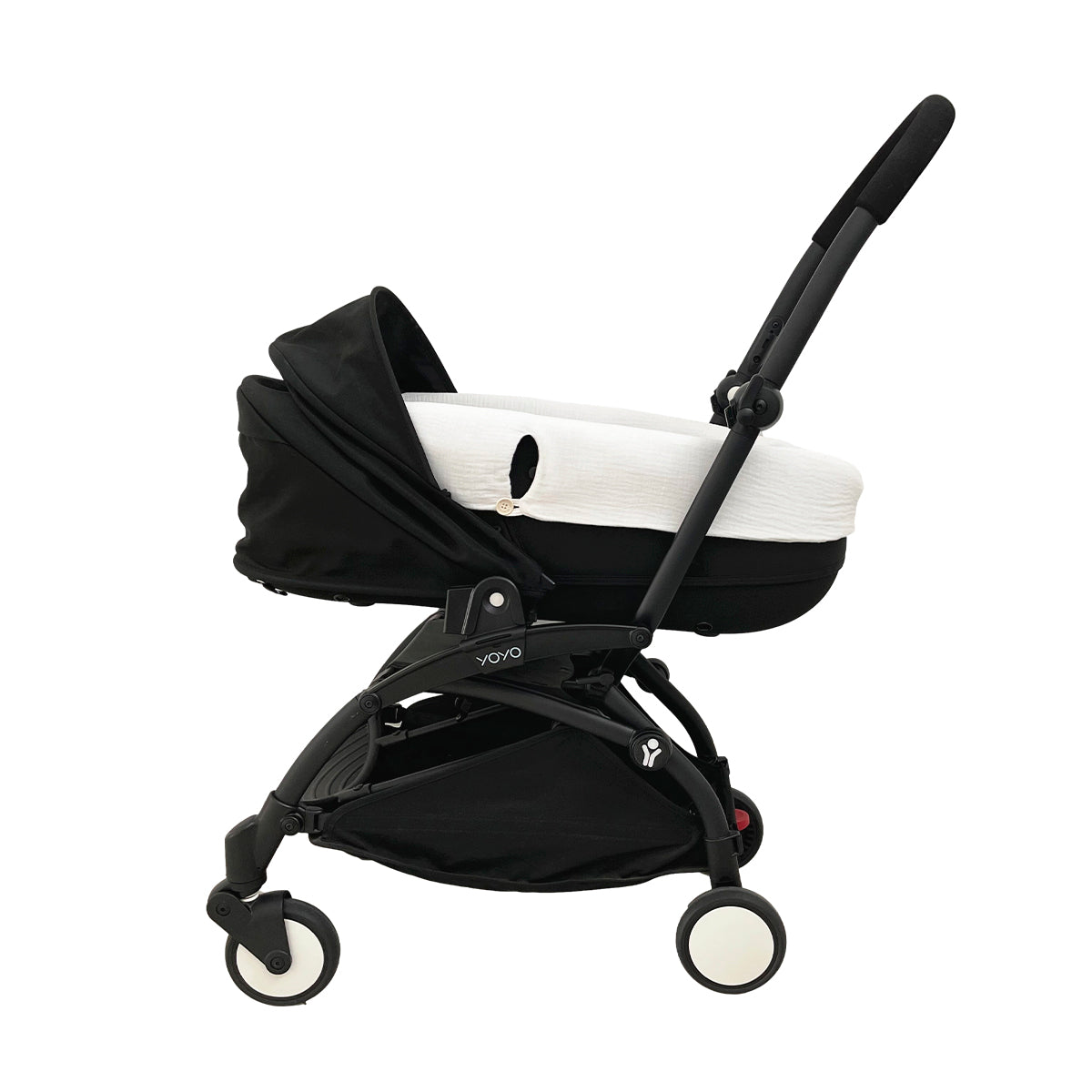 Esta es nuestra funda para el Bassinet de YOYO Babyzen. Minimal, como tanto nos gusta. Cubre todo el capazo y se coloca debajo del colchón, por lo que es necesario el uso de una bajera de colchón. Tiene botones laterales. Para acabar de vestir el capazo, es ideal el saco oval, un arrullo o una muselina… dependiendo de tus necesidades.
