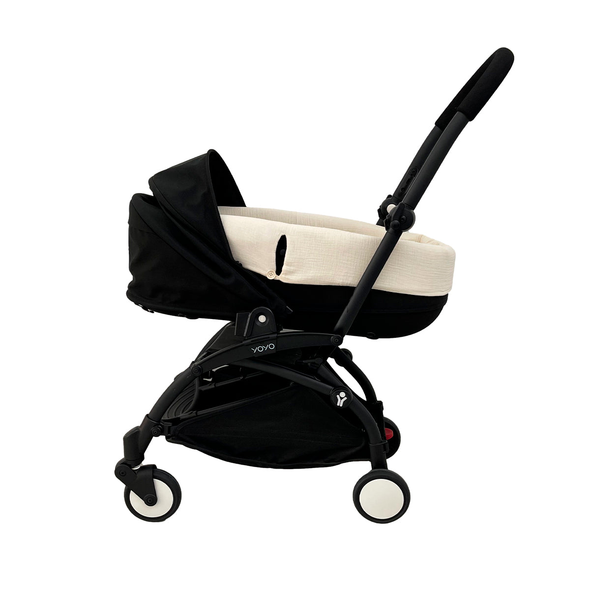 Esta es nuestra funda para el Bassinet de YOYO Babyzen. Minimal, como tanto nos gusta. Cubre todo el capazo y se coloca debajo del colchón, por lo que es necesario el uso de una bajera de colchón. Tiene botones laterales. Para acabar de vestir el capazo, es ideal el saco oval, un arrullo o una muselina… dependiendo de tus necesidades.