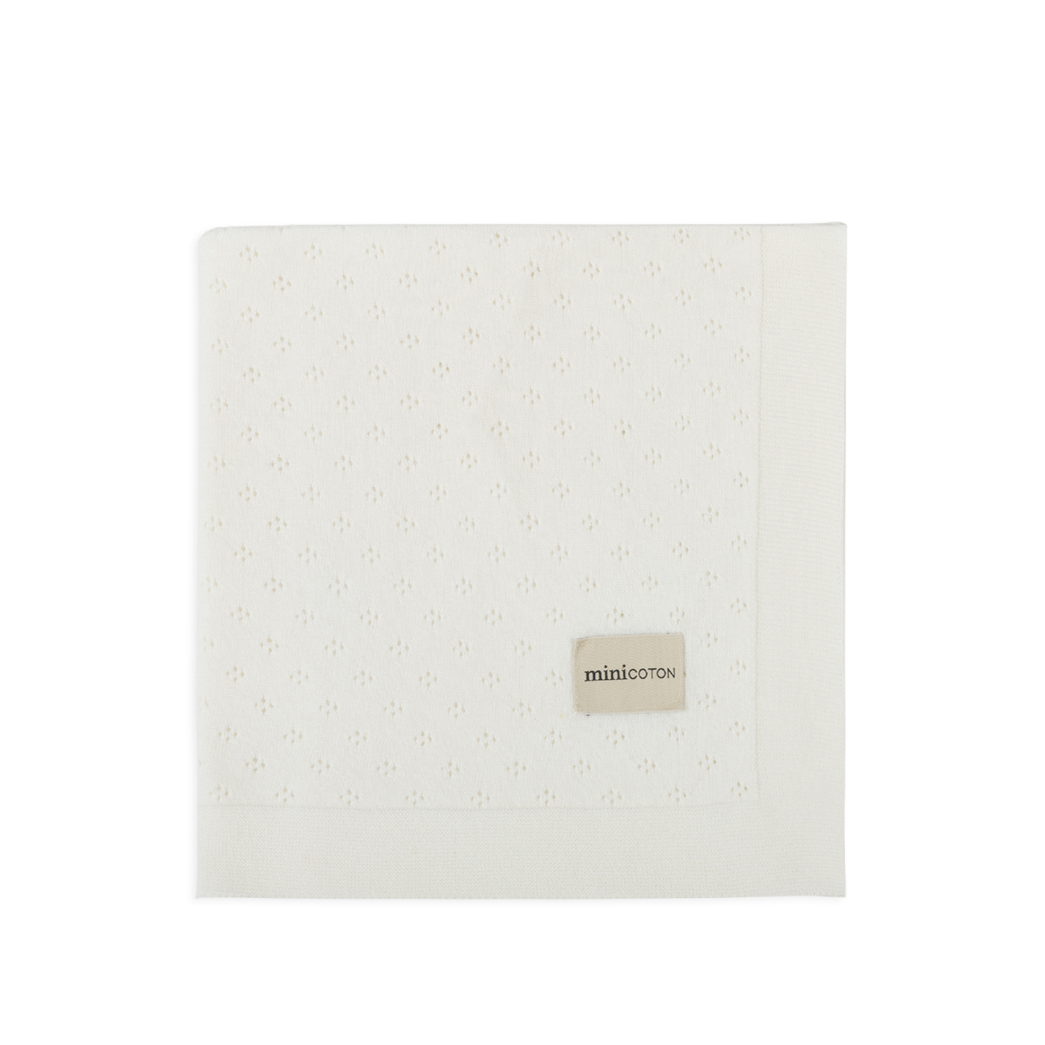 Manta suave y transpirable, ideal para la piel sensible del bebé. Su delicado punto pointelle hace que sea ideal para cualquier estación del año, brindando confort y protección.
