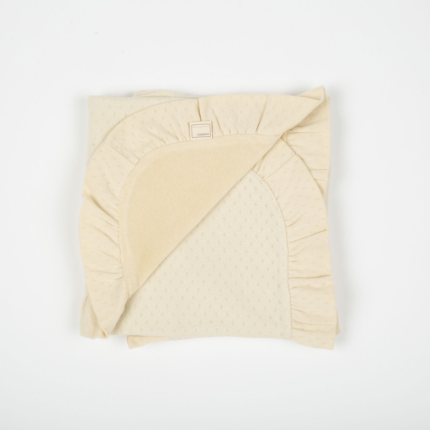 Este es nuestro versátil arrullo y mantita de la exclusiva colección NEWBORN. Reversible en punto de algodón holey para el confort del bebé y rizo absorbente por el otro lado. Se puede usar por un lado o por el otro dependiendo de las necesidades. Con volantito en todo alrededor. Ideal para dar la bienvenida al bebé y para acompañarlo en los primeros años de vida. Medidas: 71 x 71 cm