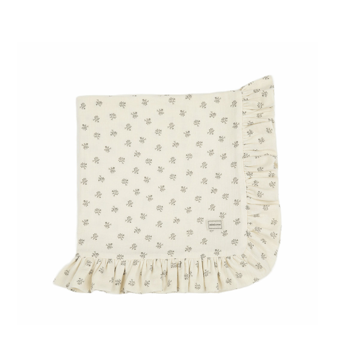 Las muselinas son un imprescindible en la canastilla del bebé, son multiusos y muy prácticas por su transpirabilidad y gran poder de absorción. Esta es doble y sin costuras, con un volante que la rodea.