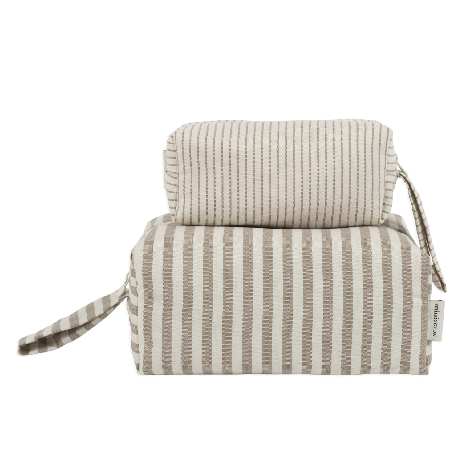 Set compuesto por dos neceseres, uno grande y otro pequeño. Nuestro neceser loop es compacto y lleva una asa, perfecto para colgar en cualquier lugar. Mantiene los artículos de higiene organizados y siempre a mano. Cierre con cremallera. El interior es un tejido repelente al agua.