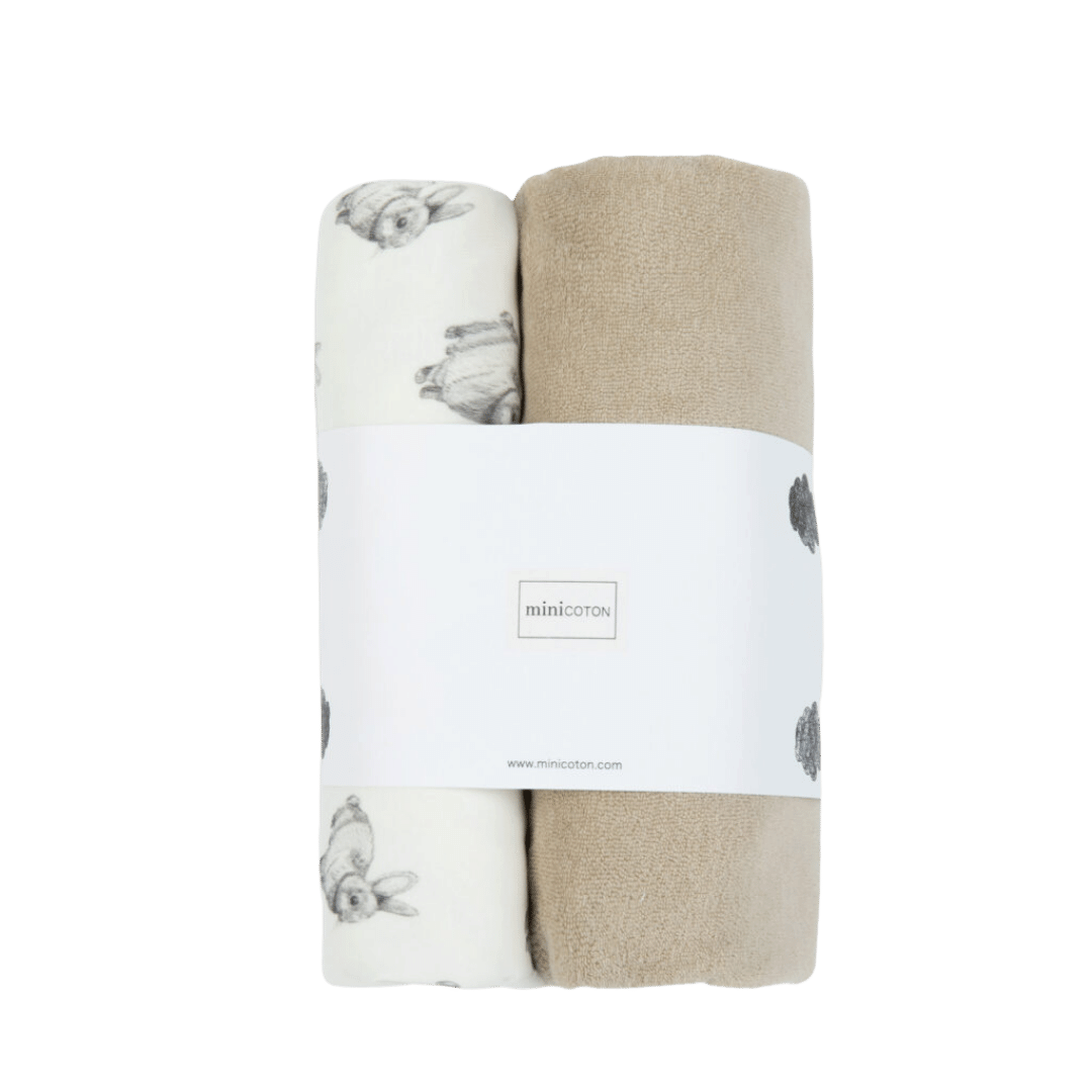 Pack de 2 fundas de cambiador. Una en punto de algodón beige y otra con estampado Rabbit Blanco.