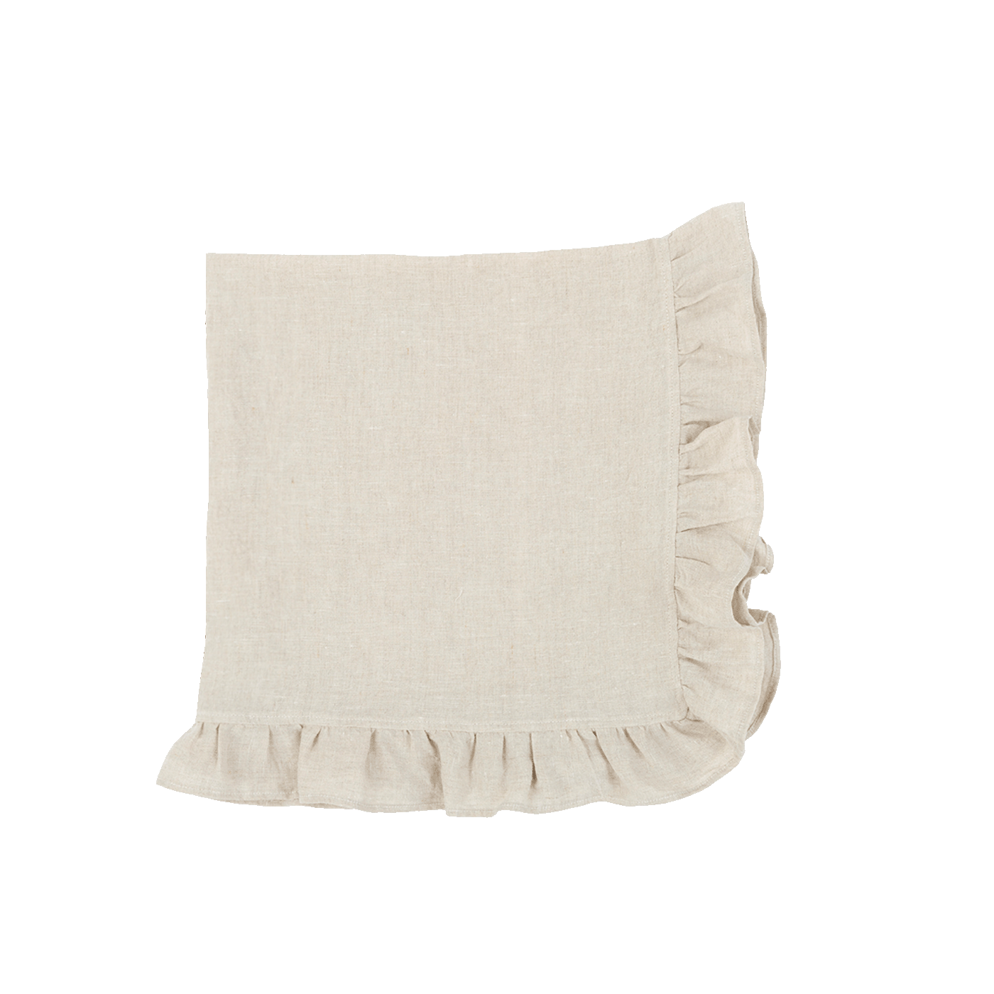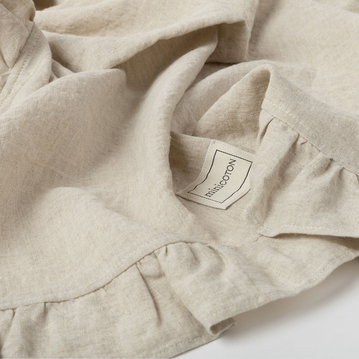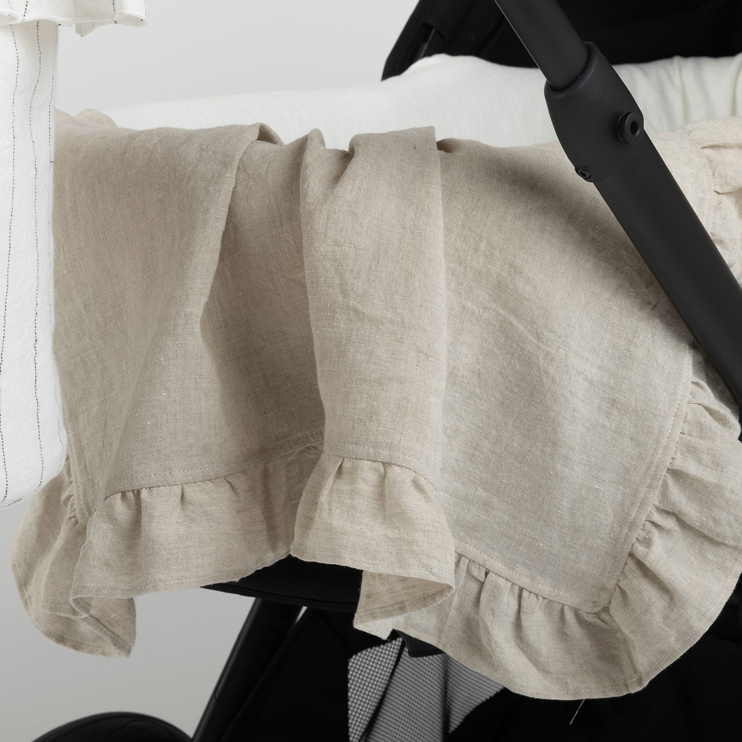 Las mantas son un imprescindible en la canastilla del bebé. Esta es muy ligera, de 100% lino, con un volante que la rodea.