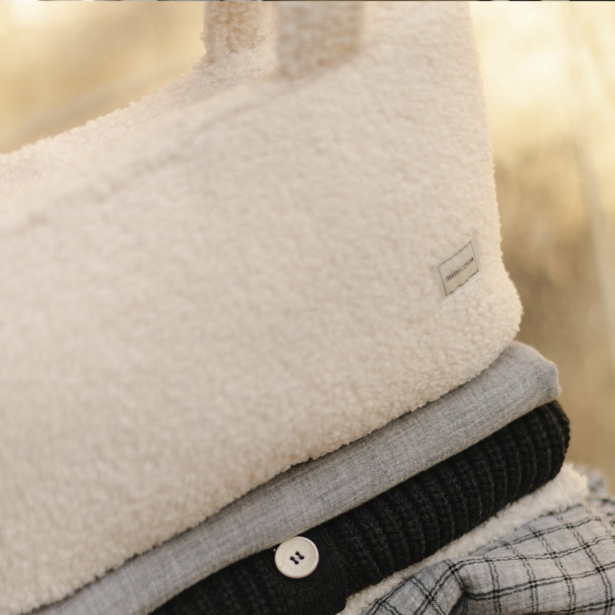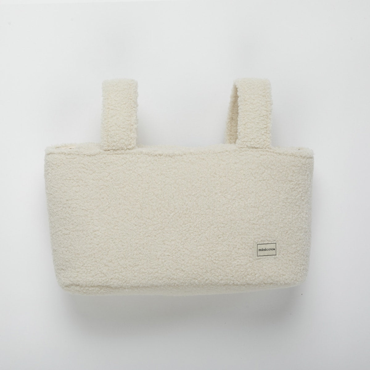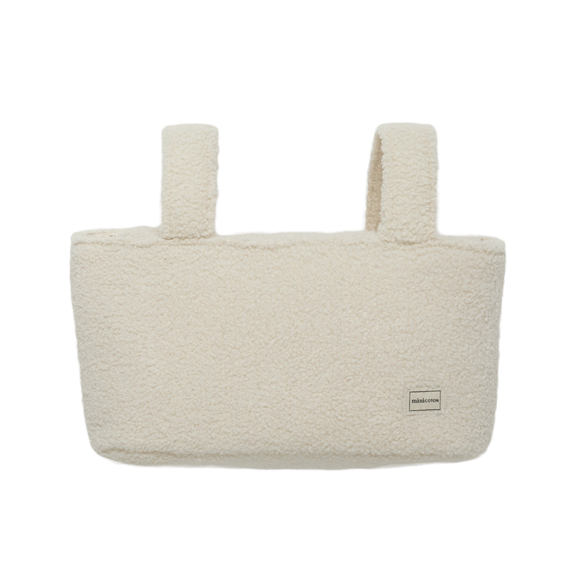 Esta es nuestra bolsa Pocket para cochecito. Es muy ligera, con cremallera y dos bolsillitos interiores. Está acolchada, por lo que los productos de su interior están protegidos. Se ajusta con broches automáticos al manillar del cochecito. También se puede usar como pocket para la cuna y así tener las cositas a mano.