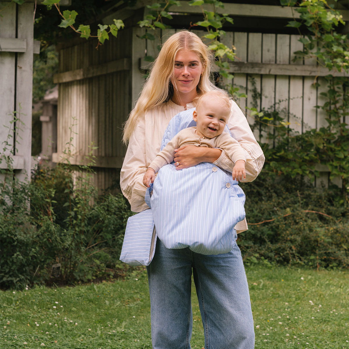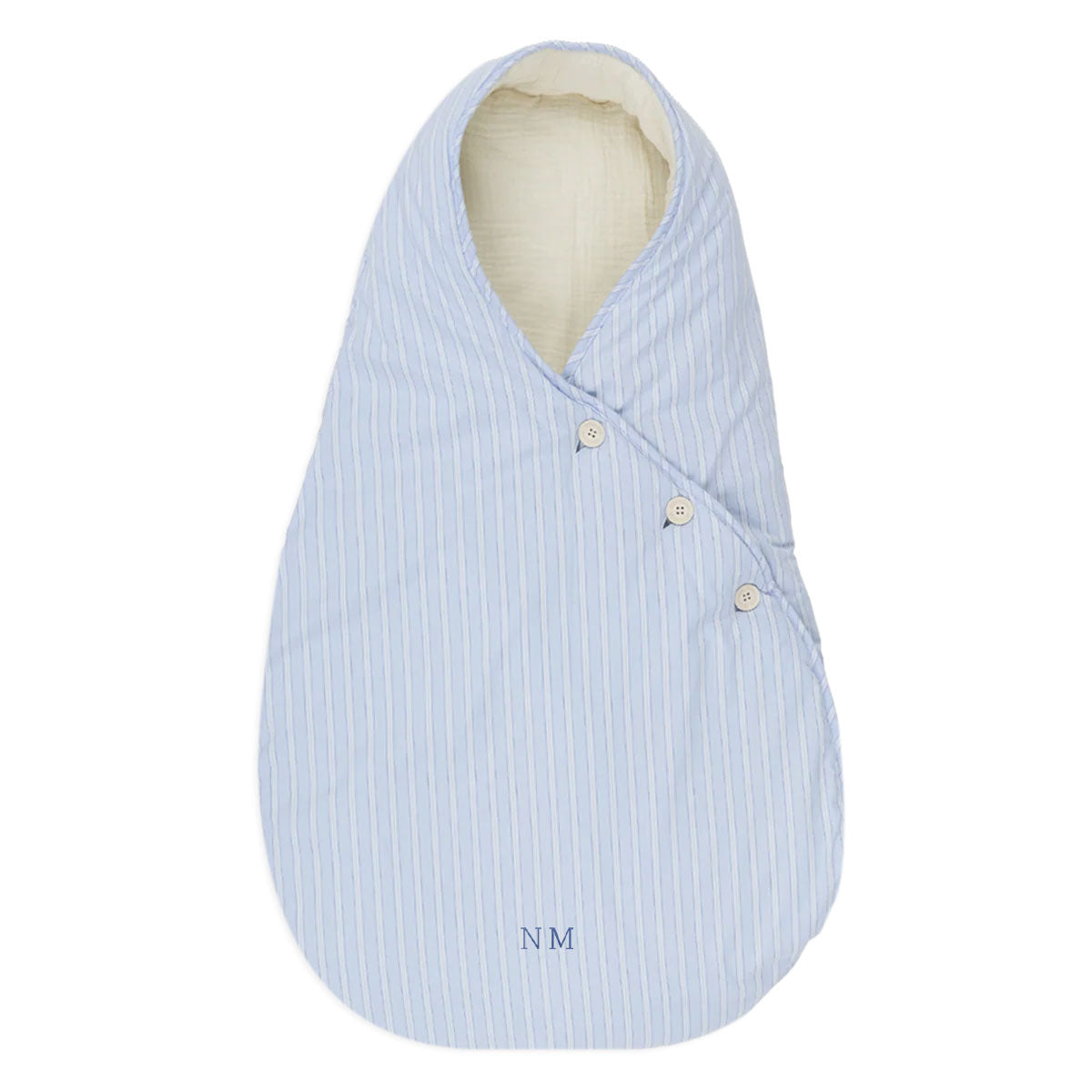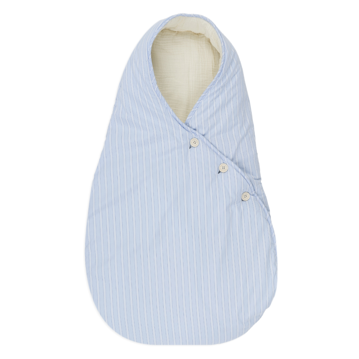 Saco para el cuco y el capazo del cochecito de paseo para los primeros meses en los que el bebé va acostado. Es mullidito y tiene tres botones para ajustar su cierre. Los botones se caracterizan por estar también hechos de algodón.