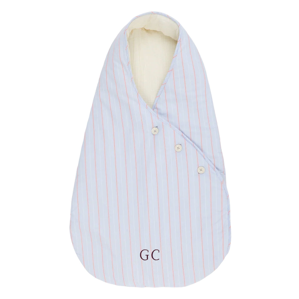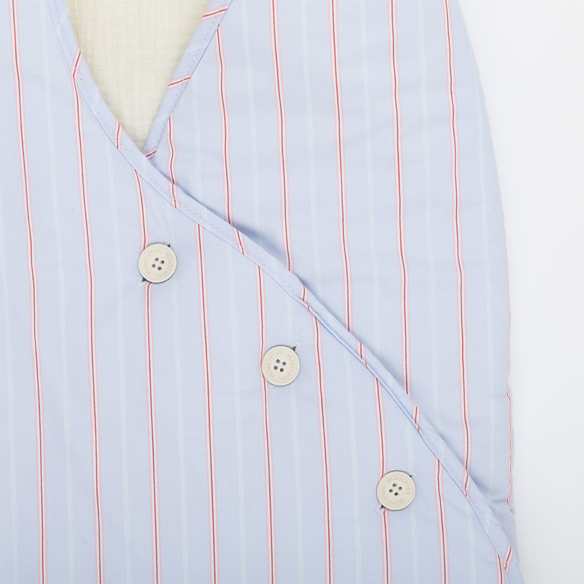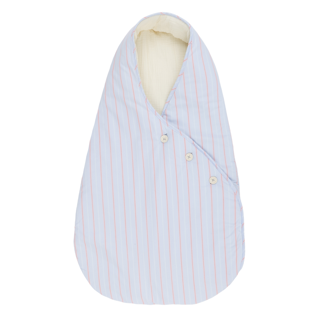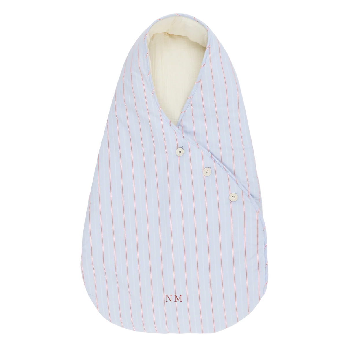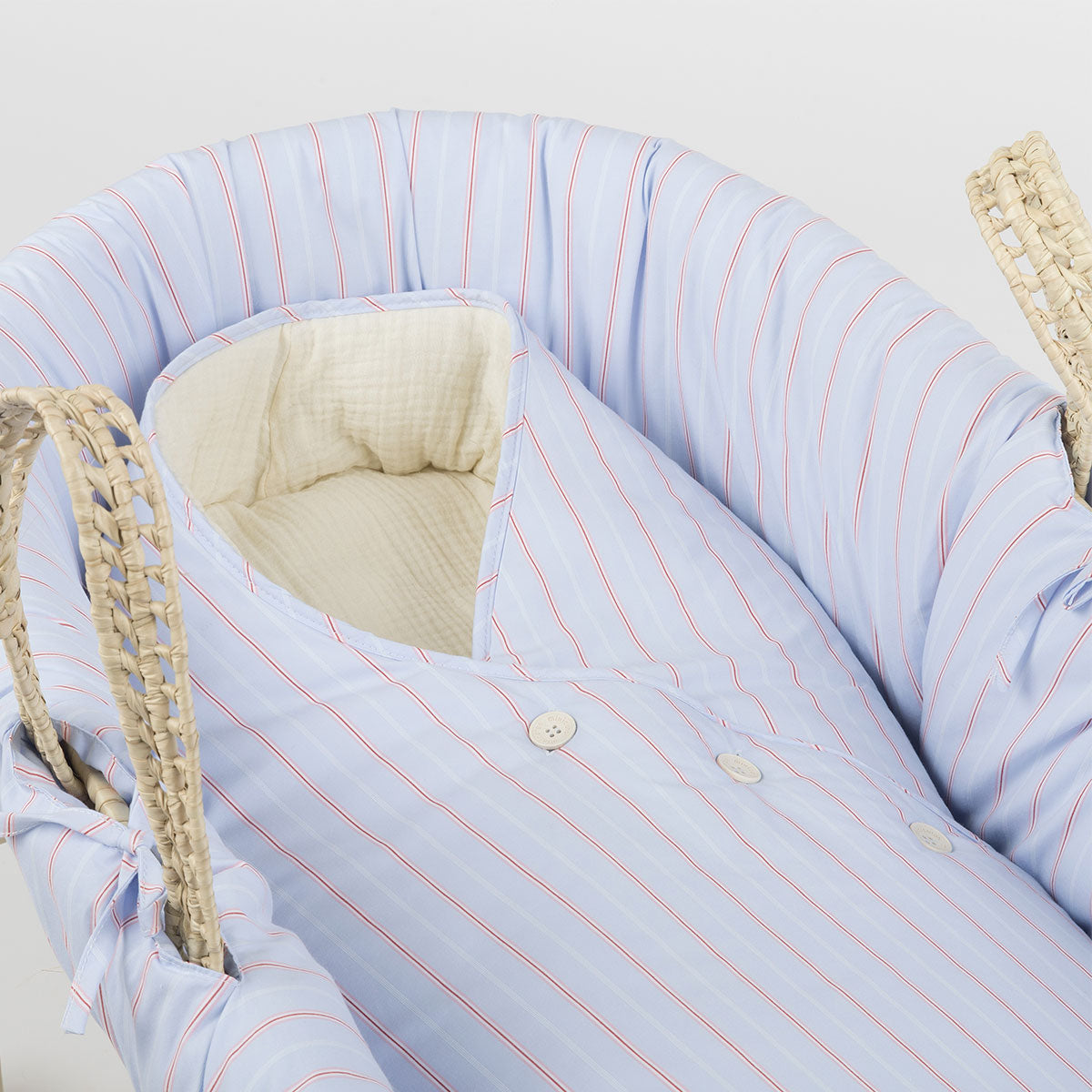 Saco para el cuco y el capazo del cochecito de paseo para los primeros meses en los que el bebé va acostado. Es mullidito y tiene tres botones para ajustar su cierre. Los botones se caracterizan por estar también hechos de algodón.