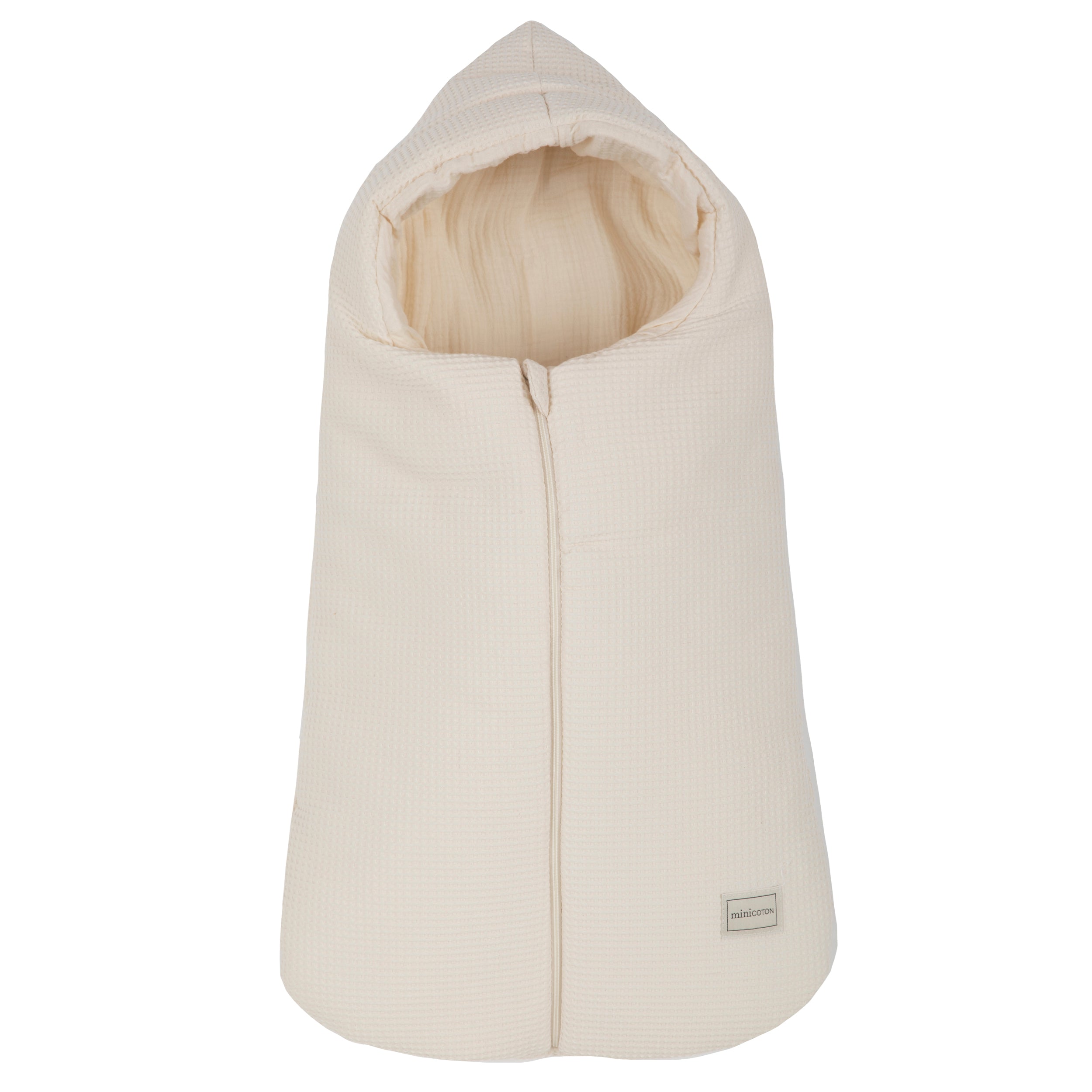 Es un saco universal para todos los capazos de cochecito, cucos, moisés, cunas y minicunas. Relleno efecto pluma, muy mullidito, lo que lo hace muy agradable al tacto.
