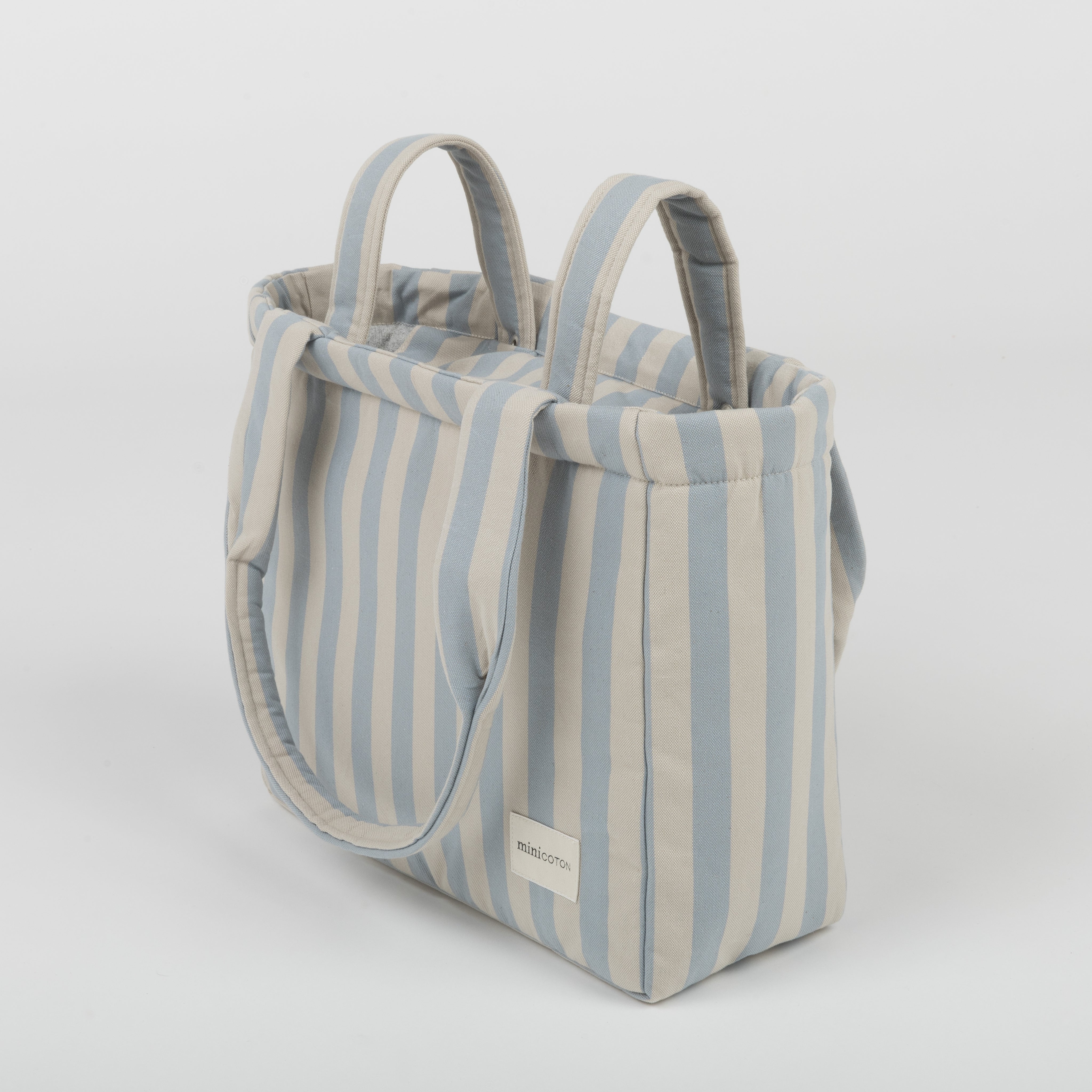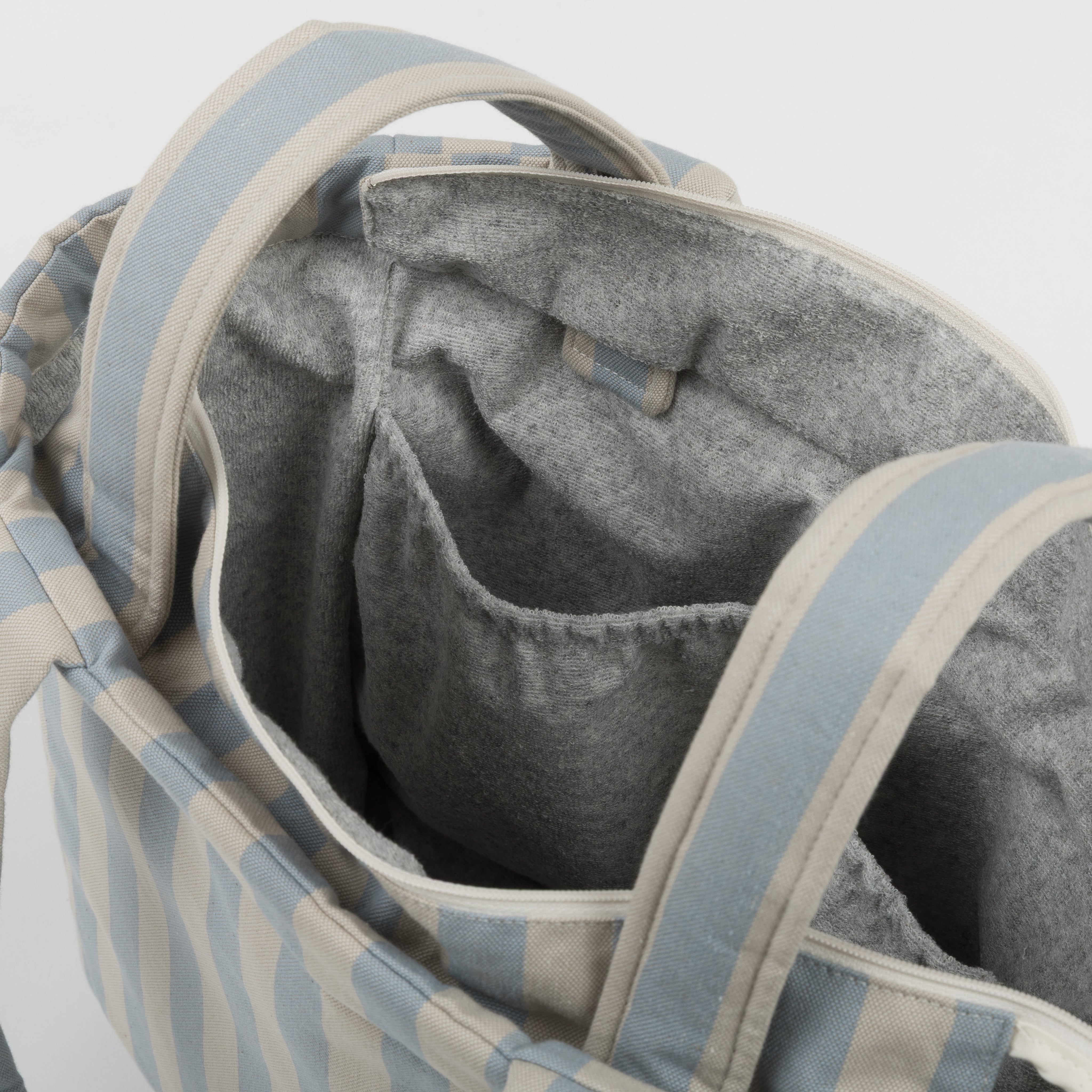 Uma bolsa espaçosa e muito leve. Com alças para o guiador do carrinho que se escondem através das suas ilhós, para se transformar numa prática tote para levar ao ombro. Com dois bolsos interiores e fecho com fecho éclair.