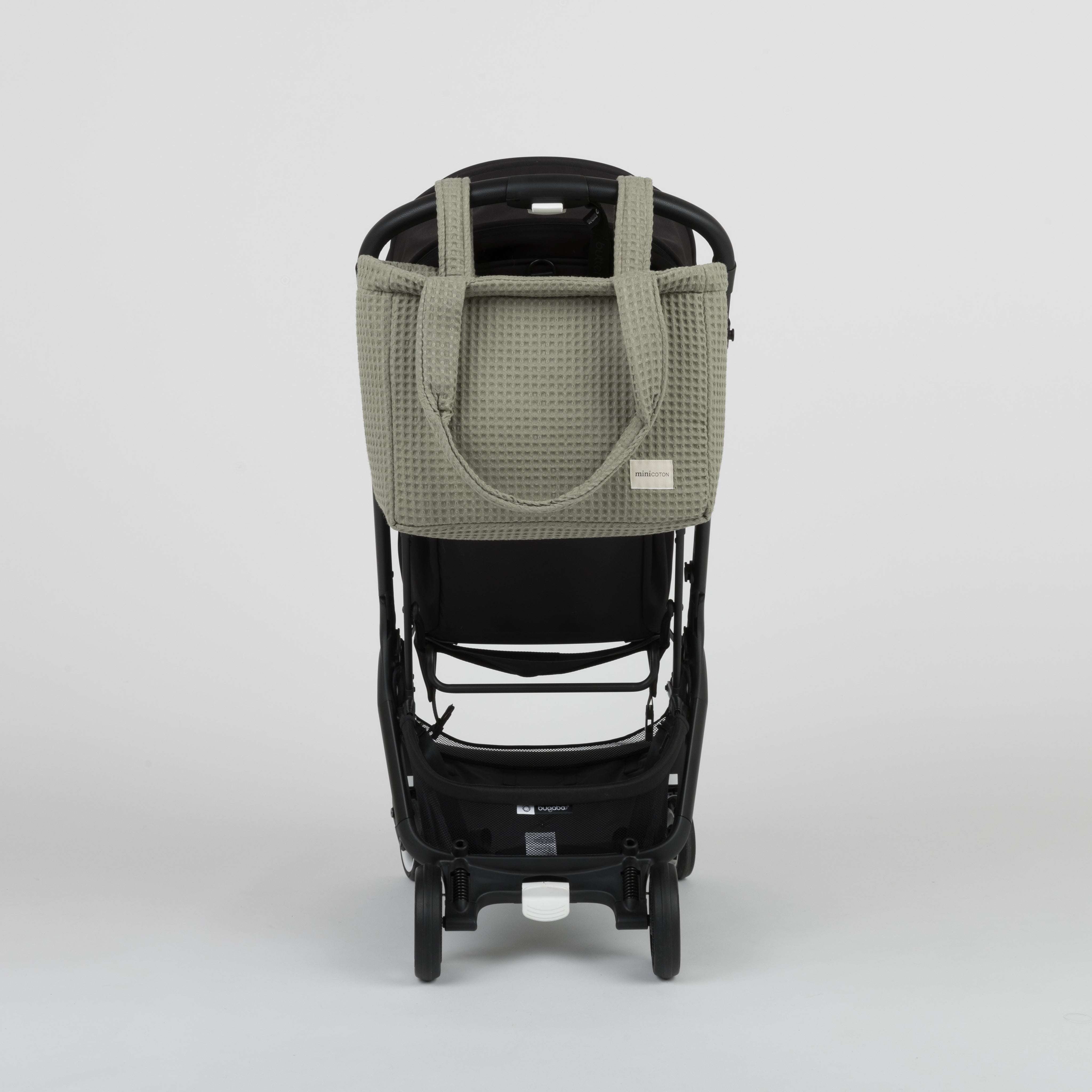 Uma bolsa espaçosa e muito leve. Com alças para o guiador do carrinho que se escondem através das suas ilhós, para se transformar numa prática tote para levar ao ombro. Com dois bolsos interiores e fecho com zíper.