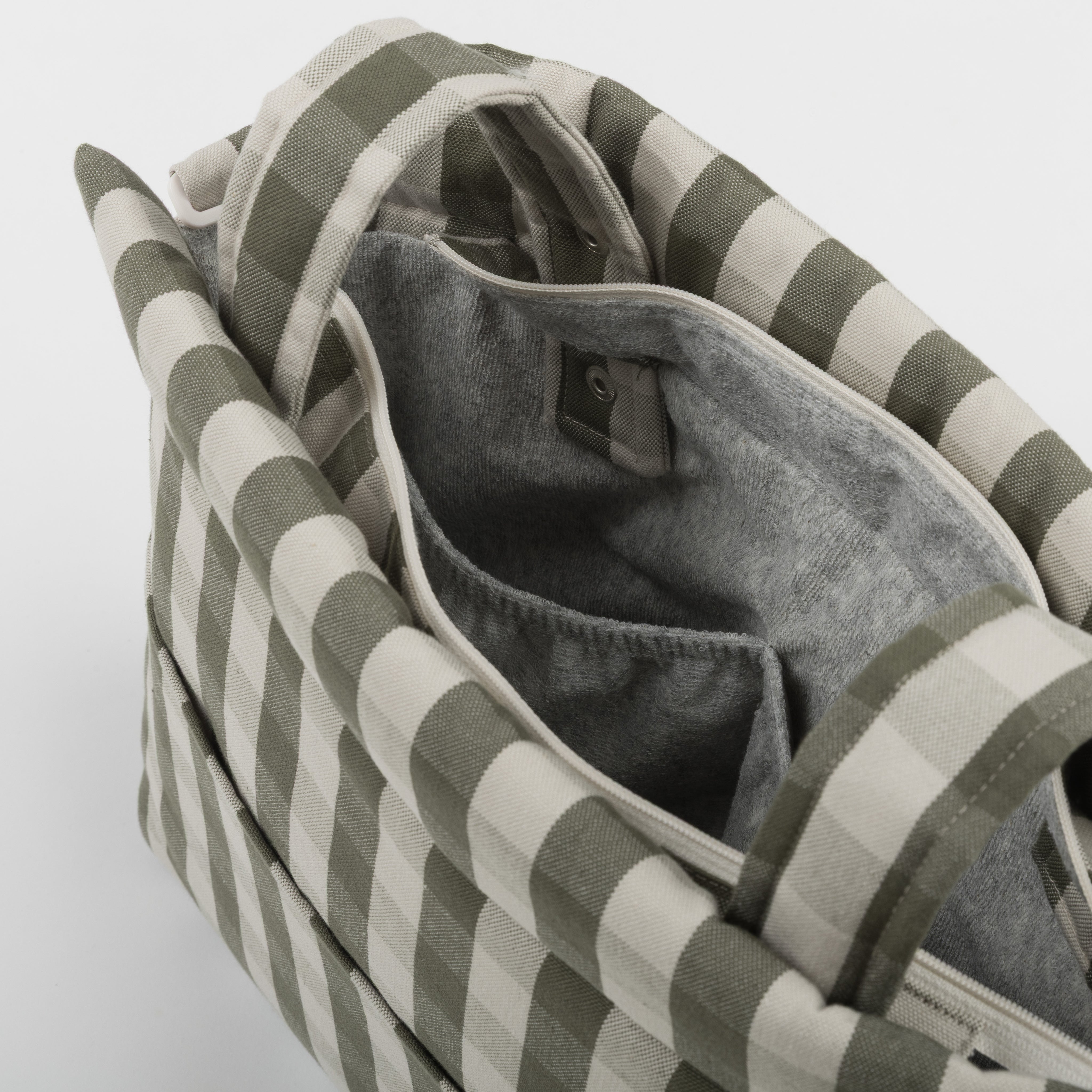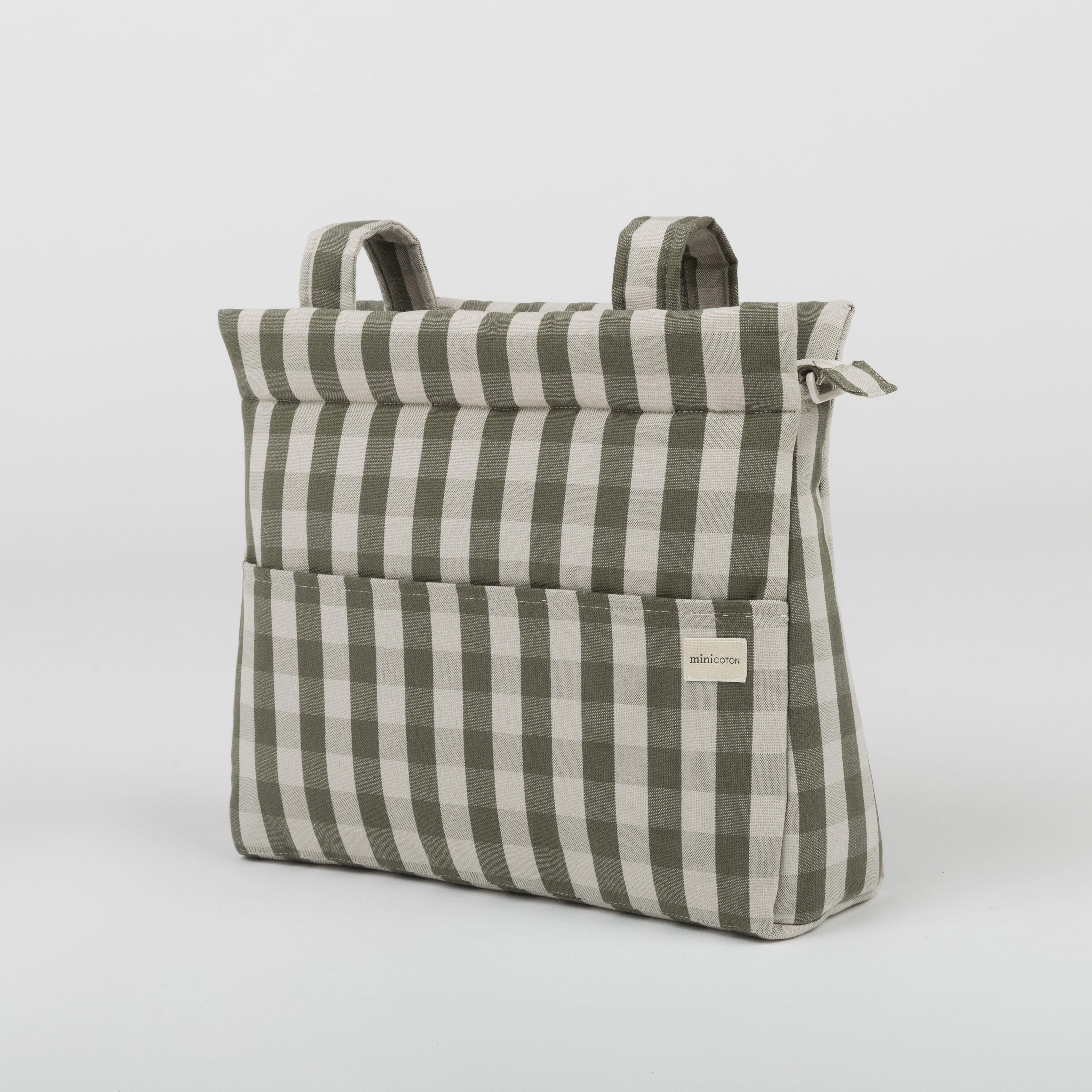 A nossa bolsa Icon para o carrinho é muito leve. Está acolchoada, pelo que os produtos no seu interior estão protegidos. Tem o interior em felpa com verso impermeável para que, se algum líquido se derramar, seja absorvido e não passe para fora. Prende-se ao carrinho com duas fitas que se fecham com botão de click. Também tem uma alça removível, que também se ajusta com botão de click, para a levar confortavelmente ao ombro ou como mala transversal. Fecha com fecho tanto na parte superior como no bolso frontal.