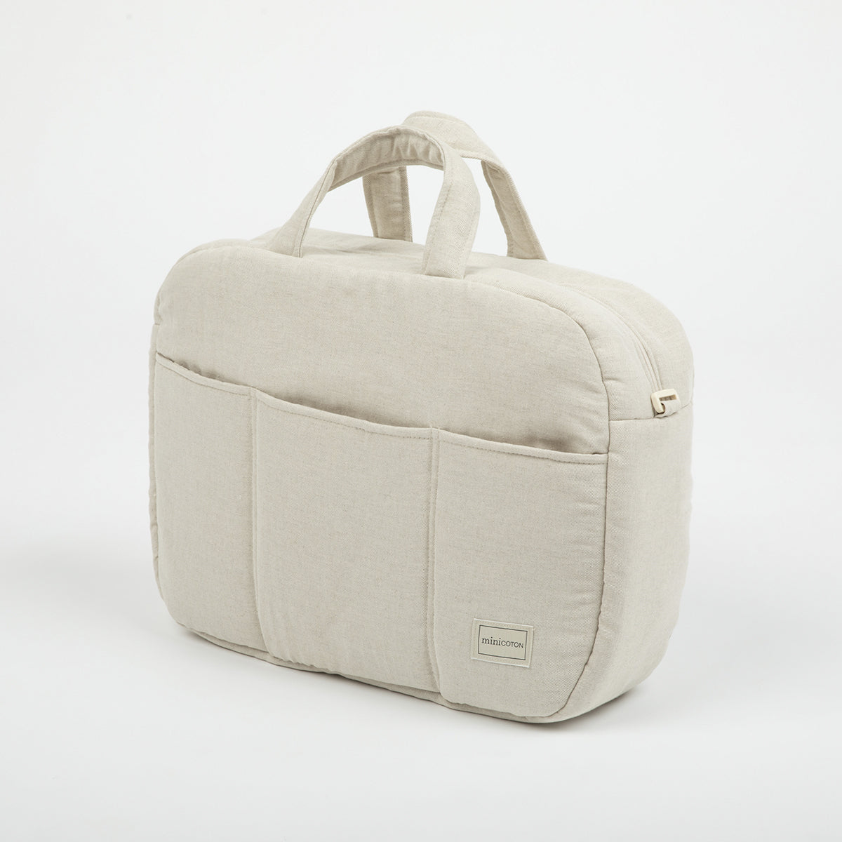 A nossa mala de maternidade é muito prática e leve. Depois será a sua mala de fim de semana. Tem dois bolsos interiores e fecha com fecho éclair. Alça de ombro removível.