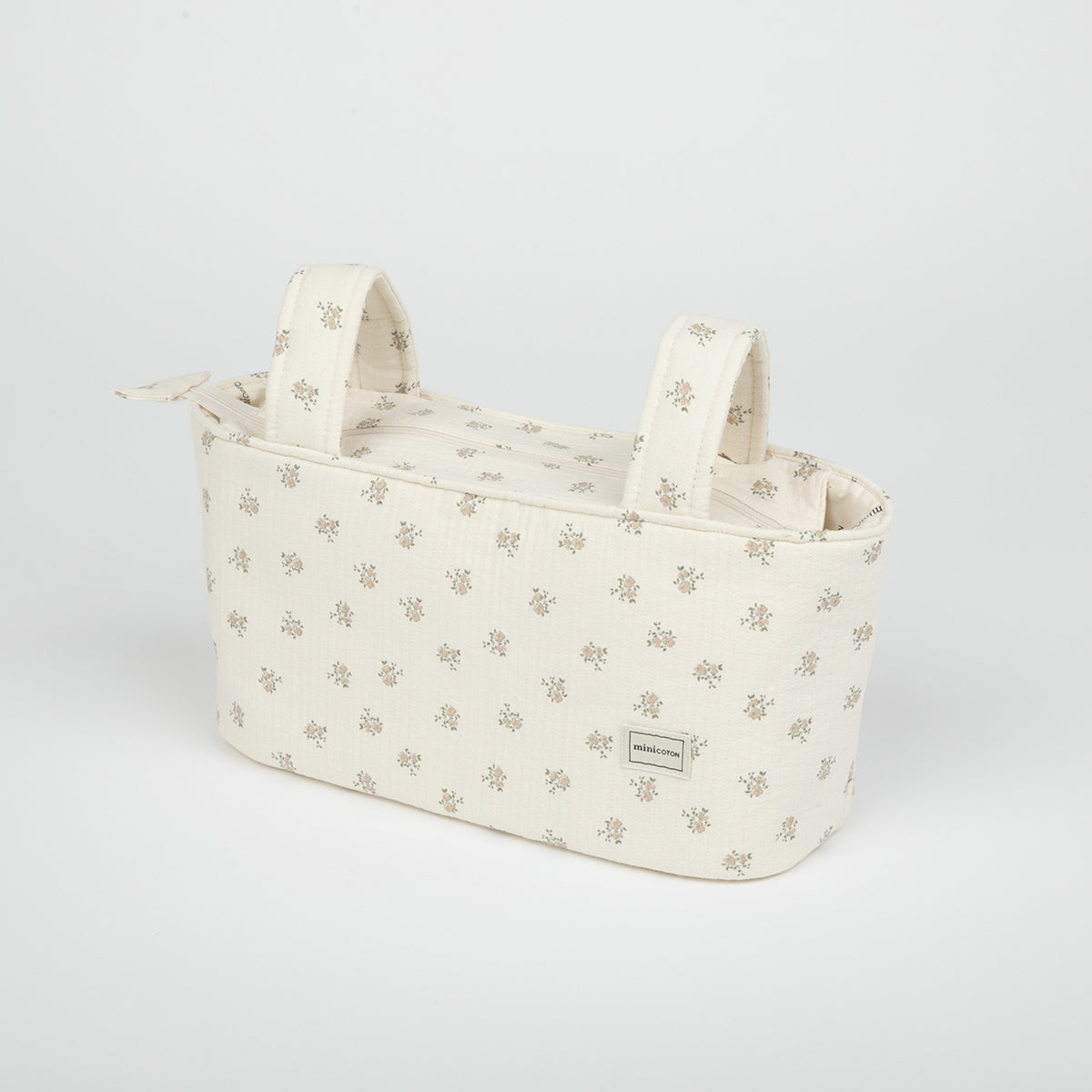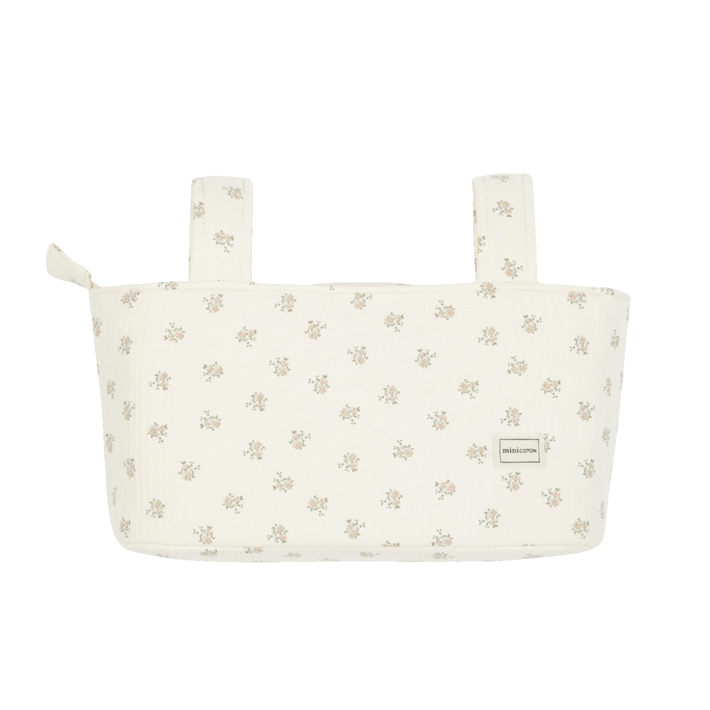 Esta é a nossa bolsa Pocket para carrinho. É muito leve, com fecho de correr e dois bolsos interiores. Está acolchoada, pelo que os produtos no seu interior estão protegidos. Ajusta-se com fechos automáticos ao guiador do carrinho. Também pode ser usada como pocket para o berço, para ter as coisinhas à mão.