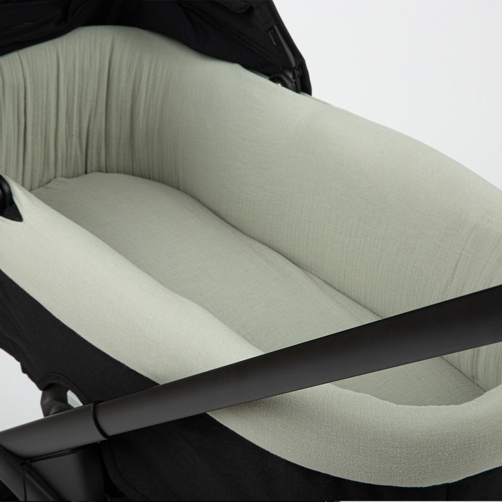 Esta é a nossa capa para alcofa Bugaboo Dragonfly. Minimal, como tanto gostamos. Fica integrada na alcofa e adapta-se tanto com tampa para os pés como sem ela, graças ao seu contorno elástico. Cobre toda a alcofa e coloca-se por baixo do colchão, pelo que recomendamos adquirir o lençol de baixo a condizer para que todo o interior fique vestido. Está disponível em diferentes cores e estampados. Para acabar de vestir a alcofa, é ideal o saco oval, um miminho ou uma musselina… dependendo das tuas necessidades.