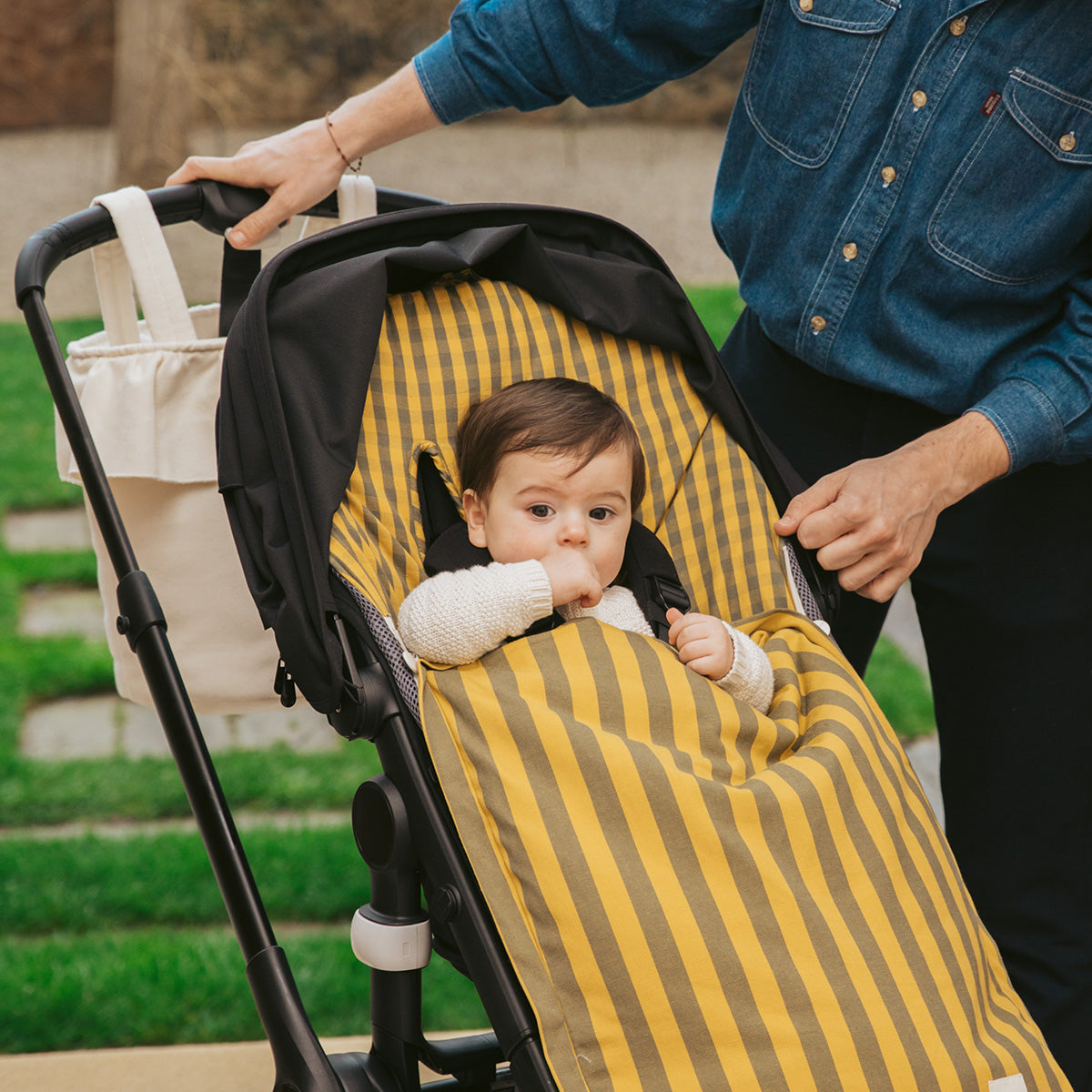 Uma bolsa muito especial pelas suas pegas destacáveis, que assumem diferentes posições para que seja perfeita como mala de mão ou bolsa para o carrinho. Com apenas dois cliques, a tua bolsa muda de formato para te acompanhar da melhor forma. Fecha-se de maneira muito prática com os seus cordões na parte superior, como uma bolsa de lanche. Tem grande capacidade e o seu interior é de tecido repelente à água e às manchas, fácil de limpar com um pano húmido. Tecido exterior 52% linho e 48% algodão.