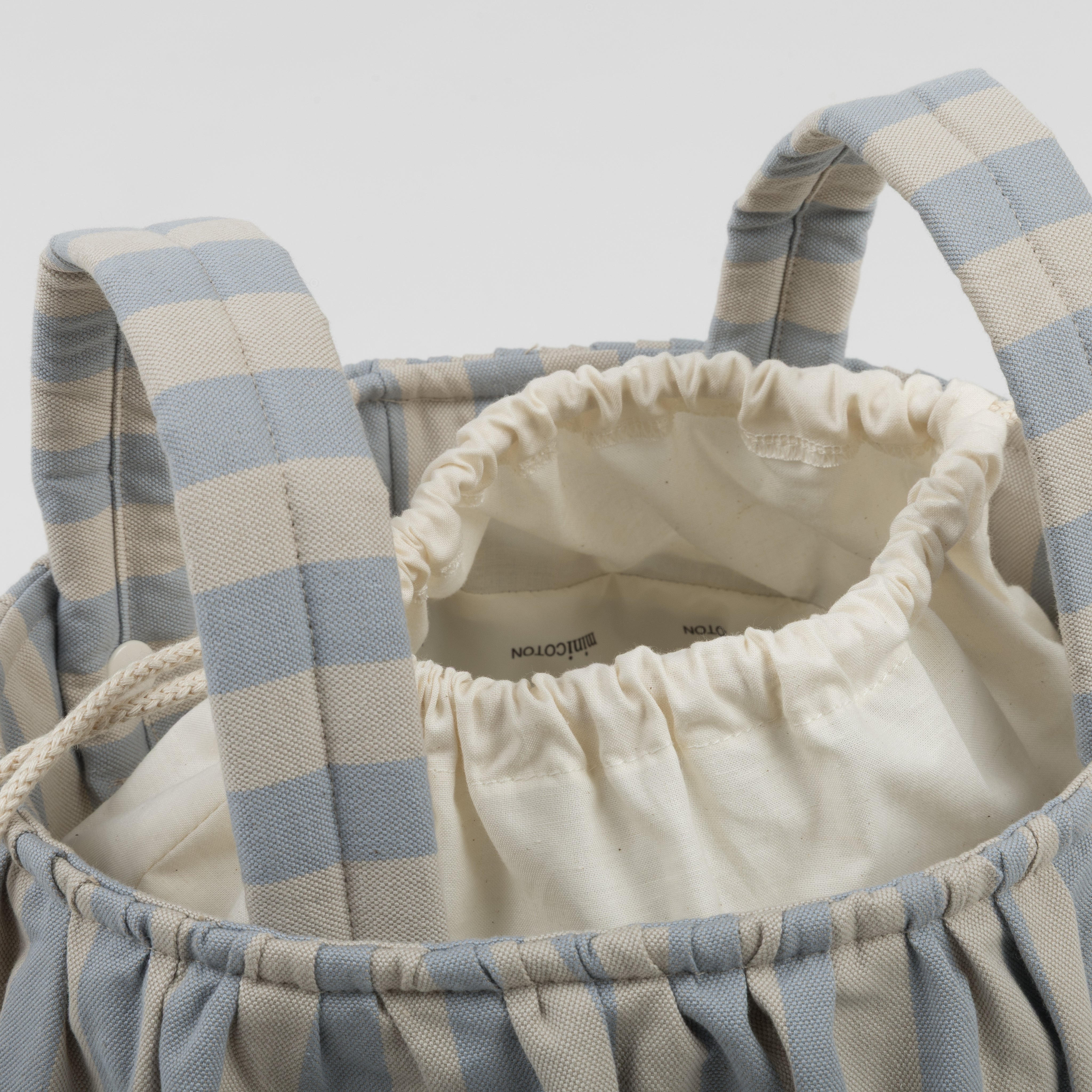 Uma bolsa muito especial pelas suas pegas removíveis, que assumem diferentes posições para que seja perfeita como mala de mão ou bolsa para o carrinho. Com apenas dois cliques, a tua bolsa muda de formato para te acompanhar da melhor forma. Fecha-se de maneira muito prática com os seus cordões na parte superior, como uma bolsa de lanche. Tem grande capacidade e o seu interior é de tecido repelente à água e às manchas, fácil de limpar com um pano húmido. Tecido exterior 100% algodão.