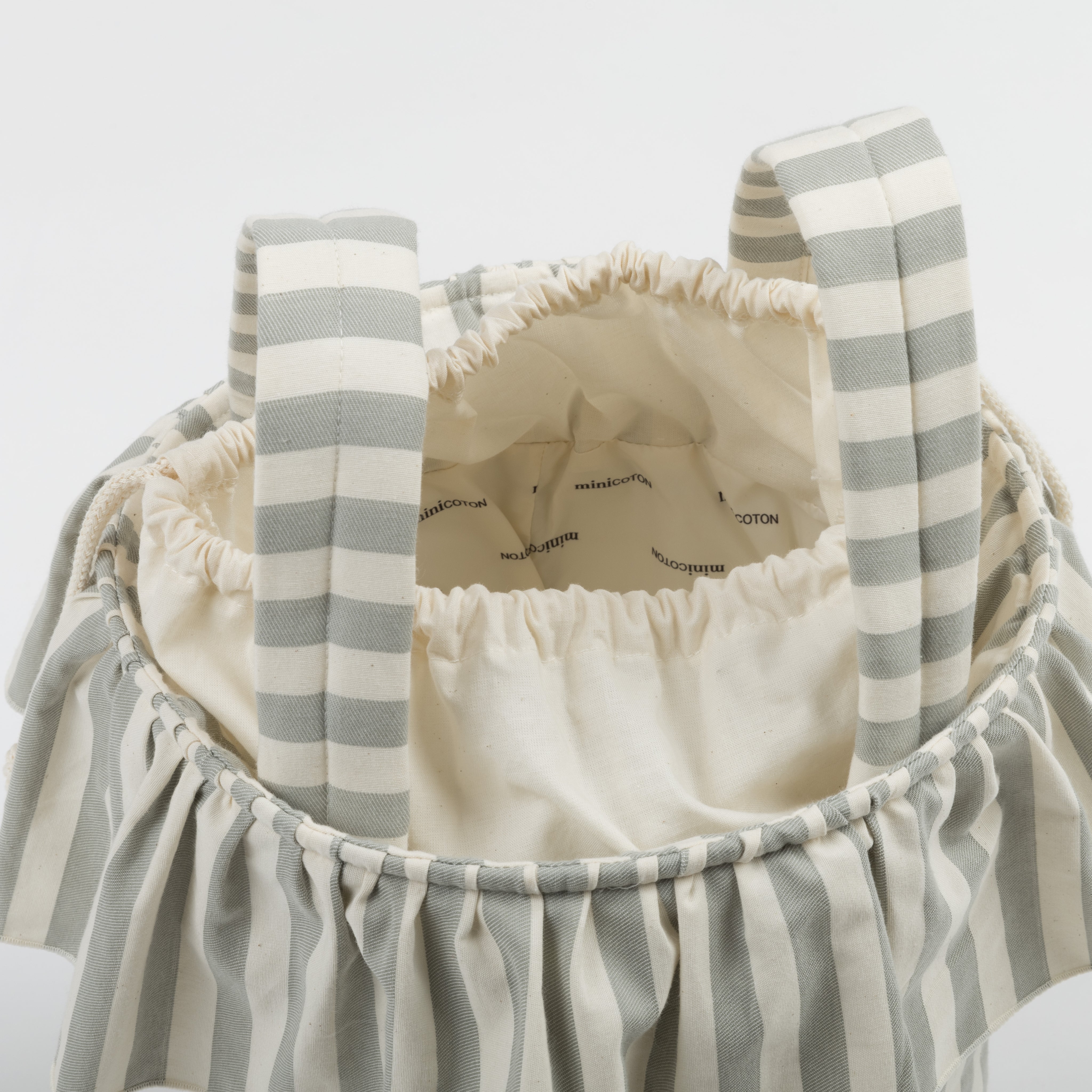 Uma bolsa muito especial pelas suas pegas removíveis, que assumem diferentes posições para que seja perfeita como mala de mão ou bolsa para o carrinho. Com apenas dois cliques, a tua bolsa muda de formato para te acompanhar da melhor forma. Fecha-se de maneira muito prática com os seus cordões na parte superior, como uma bolsa de lanche. Tem grande capacidade e o seu interior é de tecido repelente à água e às manchas, fácil de limpar com um pano húmido. O exterior é 100% algodão orgânico.