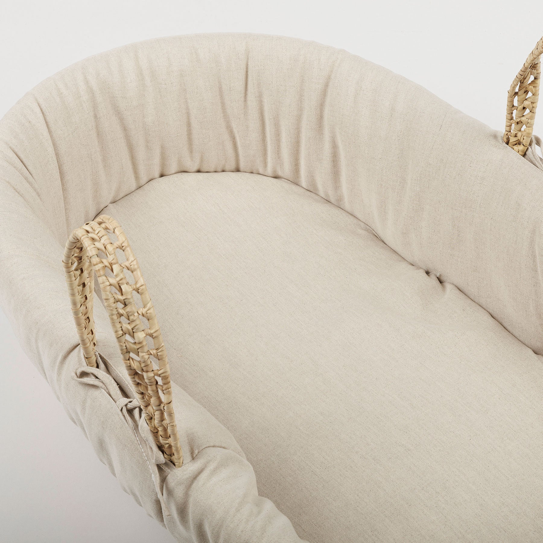 Este é o nosso alcofa minimalista. O seu forro acolchoado fará o bebé sentir-se nas nuvens. Ideal para combinar com os nossos sacos ovais, mantas ou mantinhas gofre a condizer. Muito prático para os primeiros meses de vida. Os bebés sentem-se confortáveis e acolhidos, facilitando o descanso.