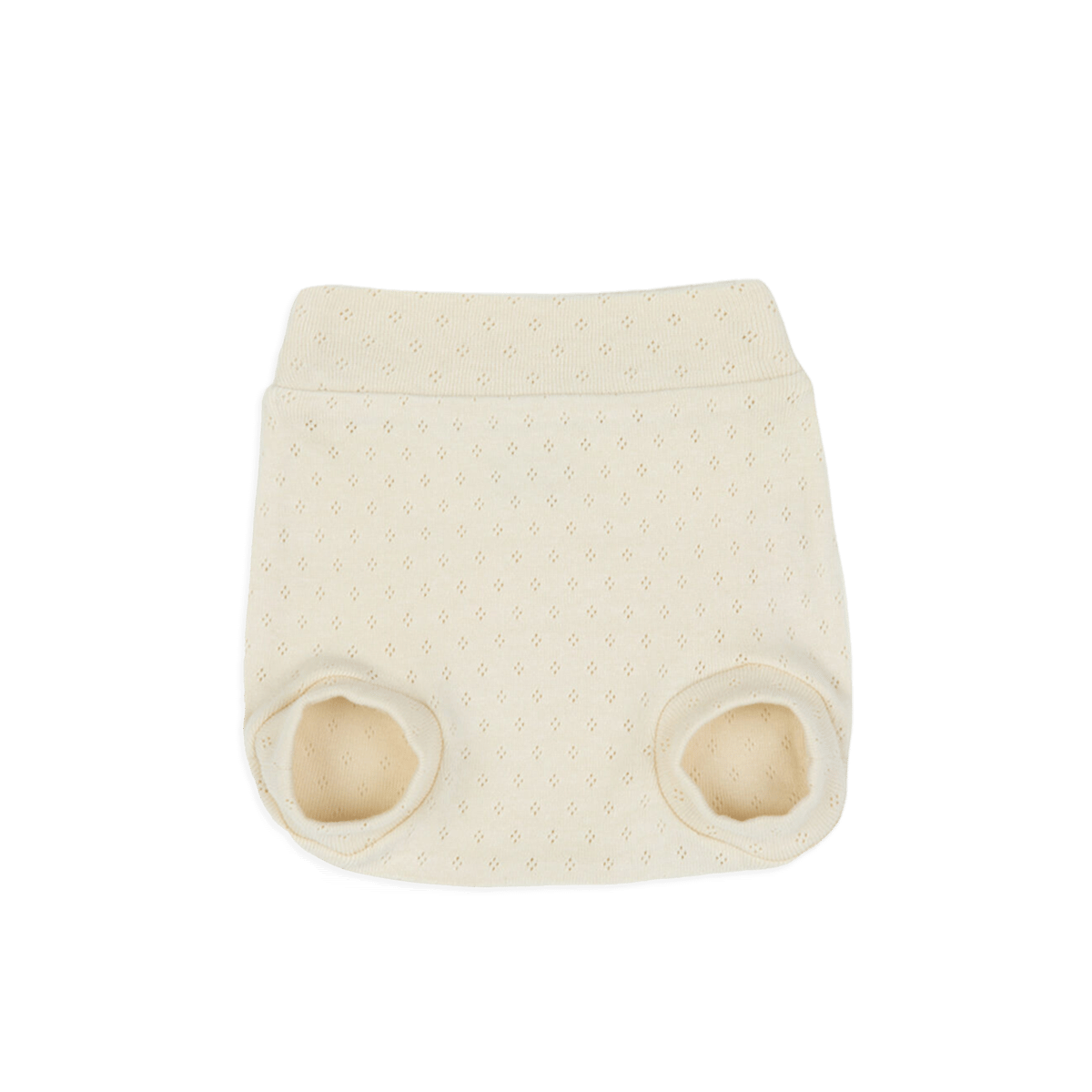 Culote em malha de algodão suave em holey. Muito confortável pela sua forma para a fralda. Faixa suave para a cintura. Tamanho 0-3 meses.
