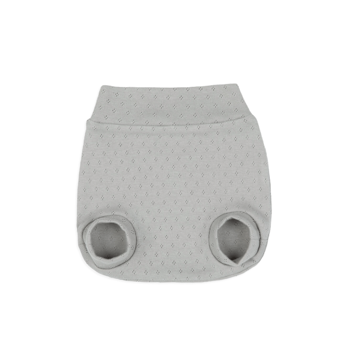 Culote em malha de algodão suave em holey. Muito confortável pela sua forma para a fralda. Faixa suave para a cintura. Tamanho 0-3 meses.