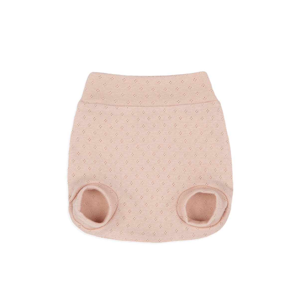 Culote em malha de algodão suave em holey. Muito confortável pela sua forma para a fralda. Faixa suave para a cintura. Tamanho 0-3 meses.