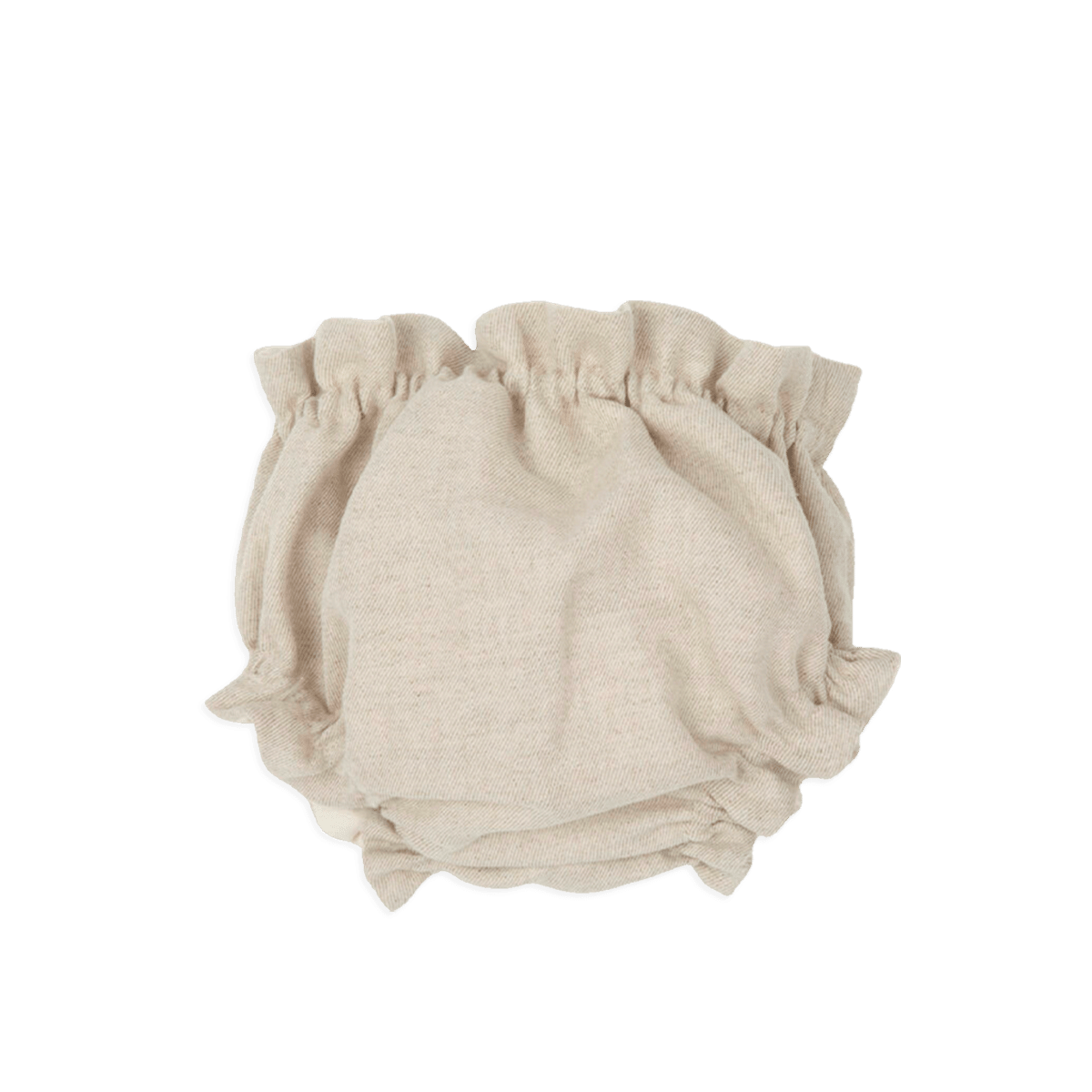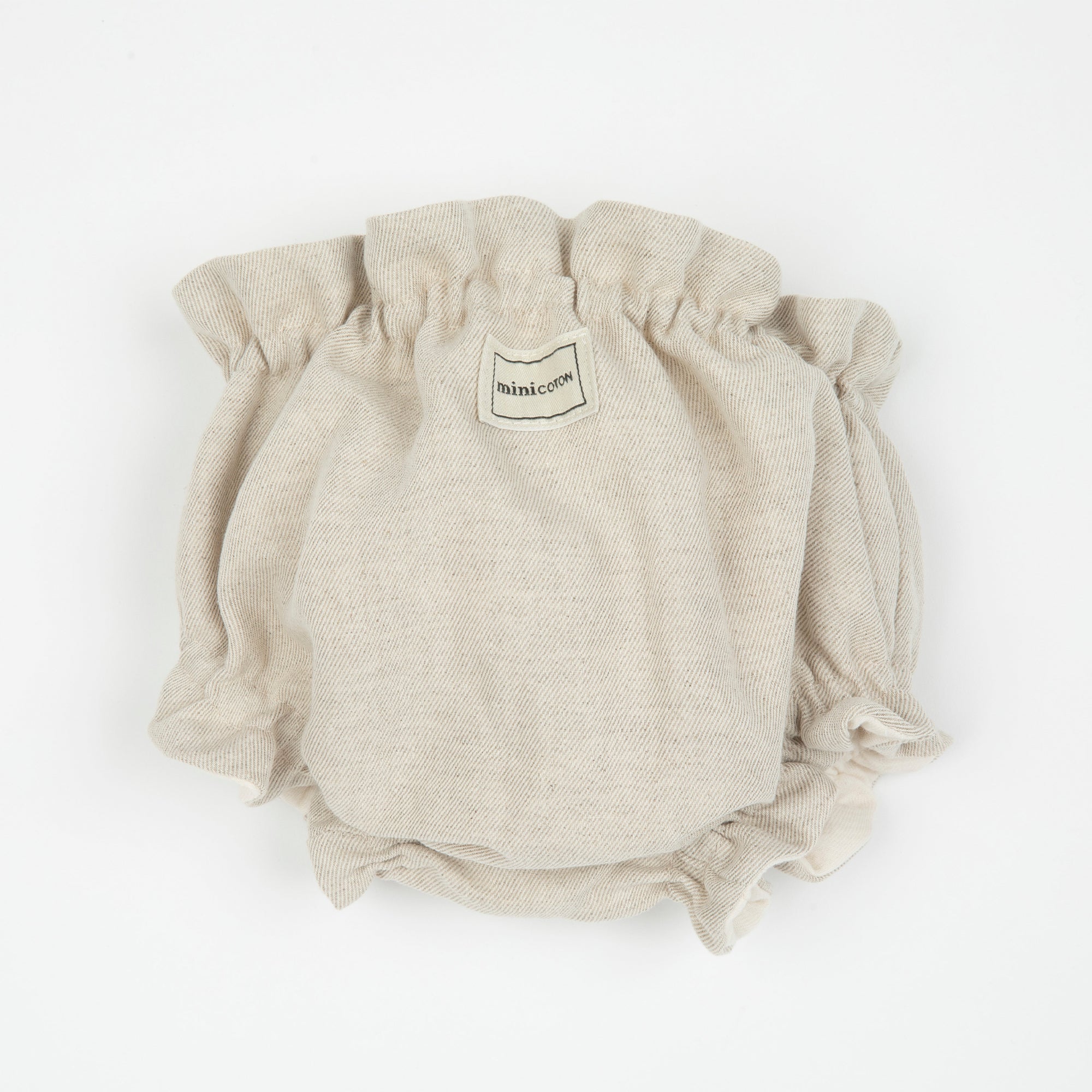 Disponível no tamanho 0-12 meses. Sem costuras. Reversível. De um lado é 44% linho 56% algodão e do outro, algodão orgânico 100% na cor cru.