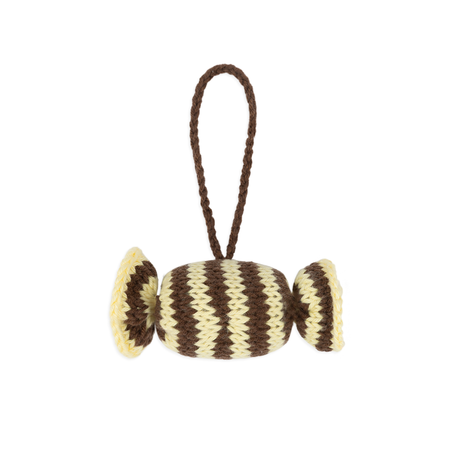 Caramelo em cor amarelo e castanho. Charm feito à mão para dar um toque especial aos seus acessórios.