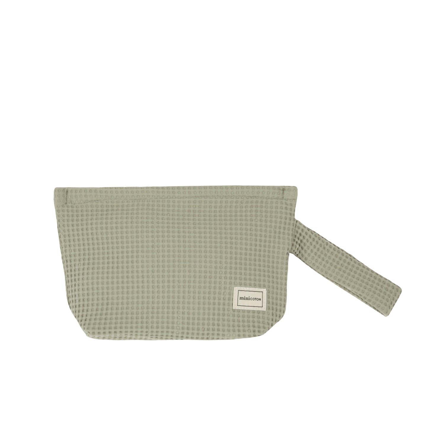 Uma bolsa para guardar fraldas, cremes... É muito prática porque tem uma alça para poder colocar a bolsa no pulso, e assim ter as mãos livres para cuidar do nosso bebé.