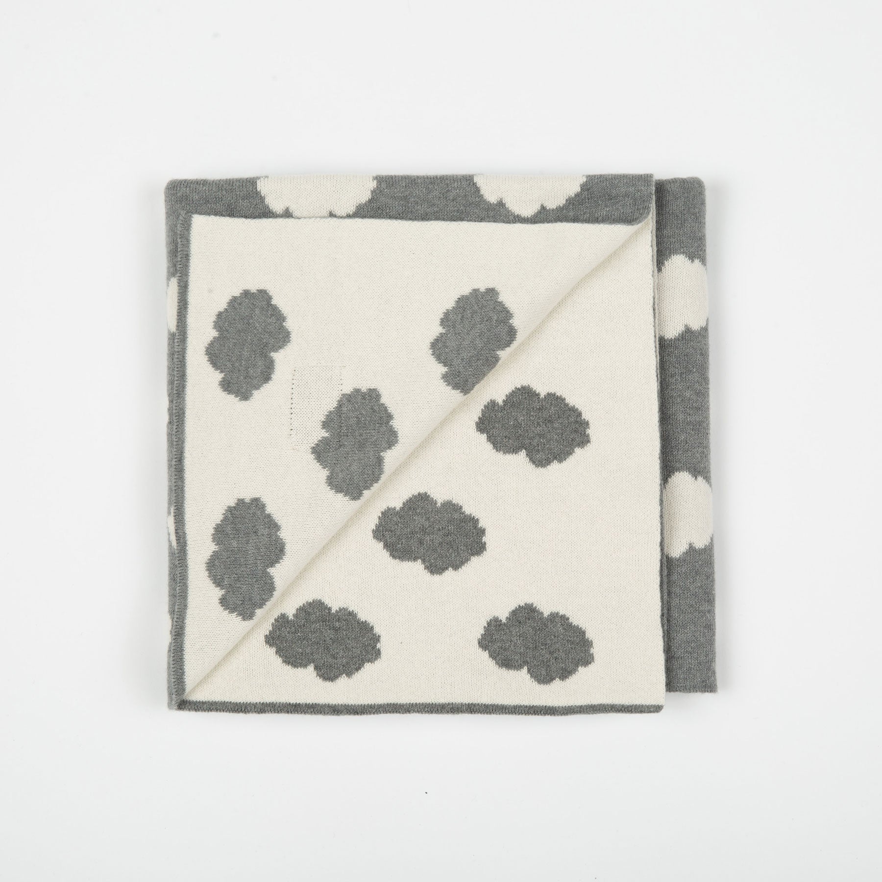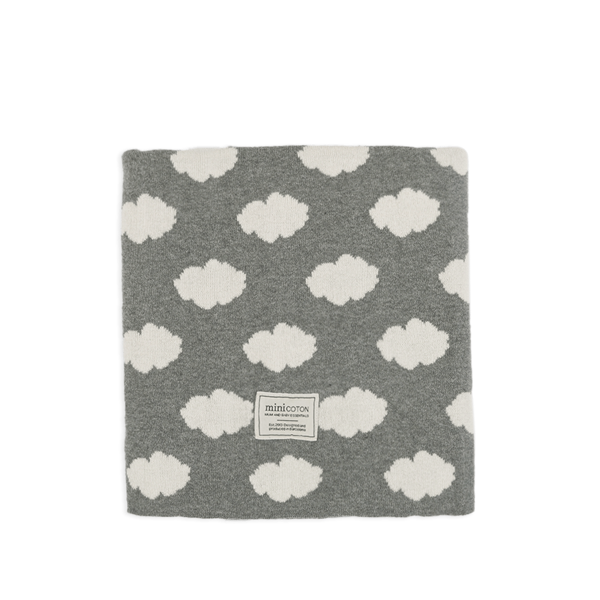 É reversível, por isso são duas mantas numa. De um lado tem o fundo melange com as nuvens em cor cru, e do outro o fundo cru e as nuvens em melange.