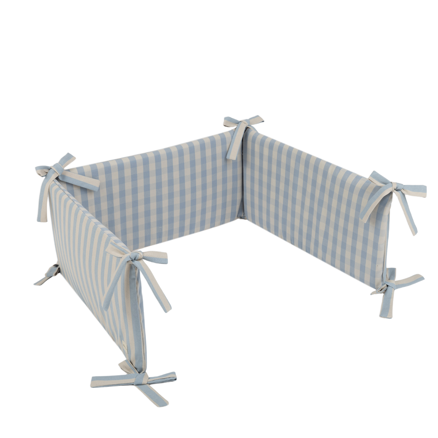 Este protetor de berço “Half” é para berços de 120 x 60cm. Cobre metade do berço na zona da cabeceira. Se preferires, podes cobrir todo o perímetro do berço comprando duas unidades. É reversível, com um lado às riscas e o outro aos quadrados vichy.