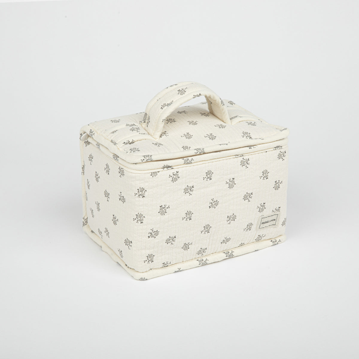 O nosso necessaire está acolchoado, por isso as coisinhas do interior estão protegidas. Fecho com fecho éclair na parte superior.