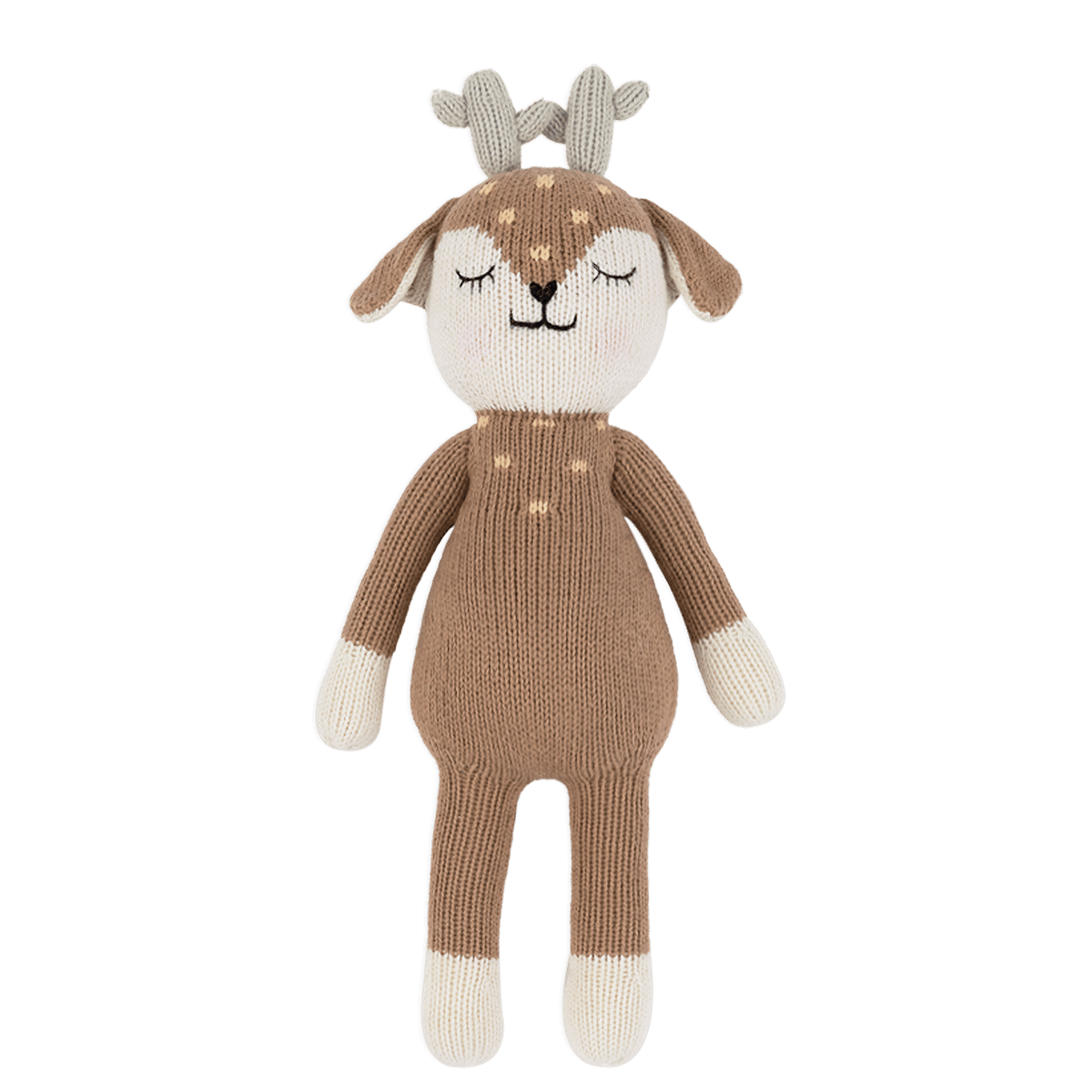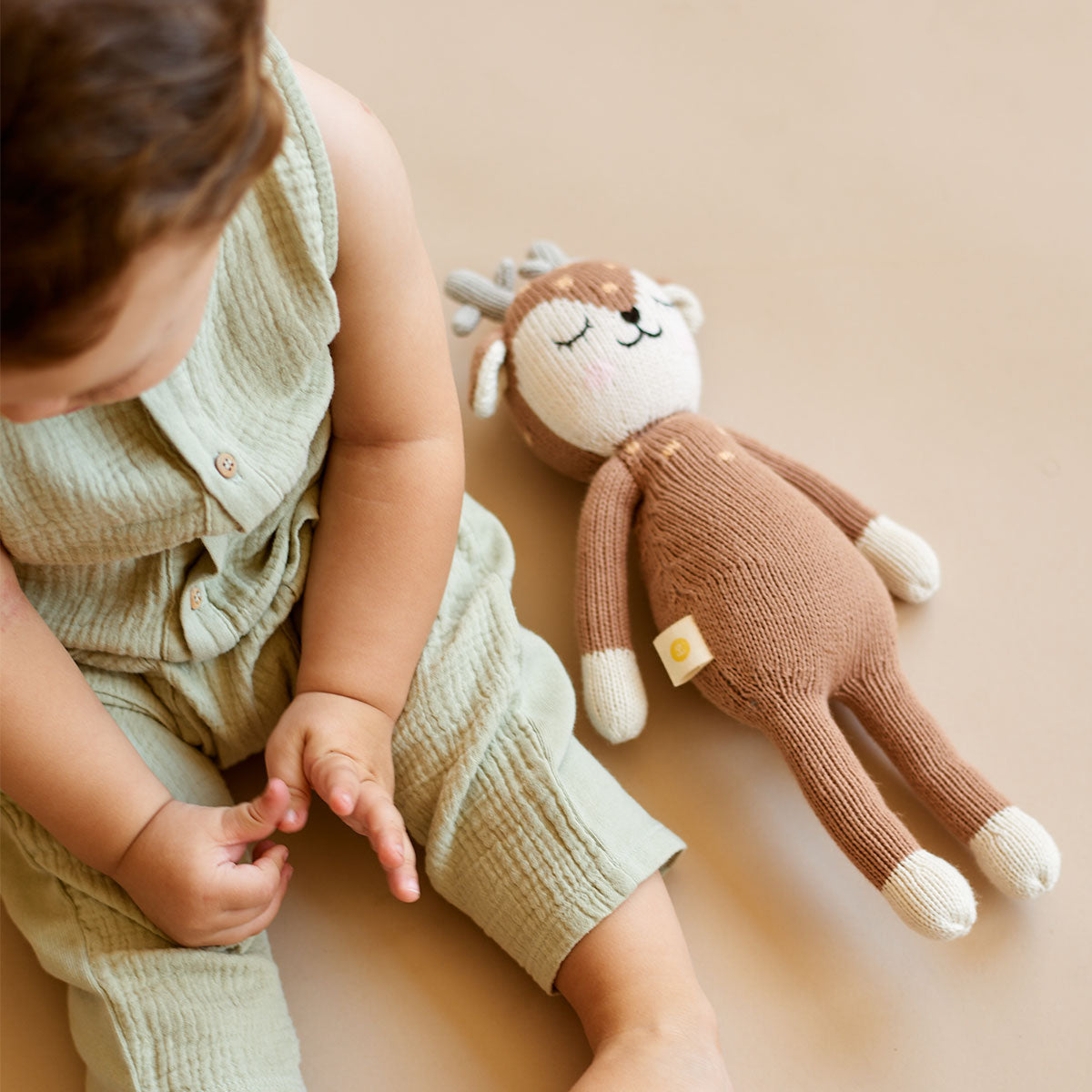 Olivia. O veado feito peluche artesanalmente com 100% algodão e enchimento em poliéster reciclado hipoalergénico. Tintas ecológicas não tóxicas. Adequado para peles sensíveis.