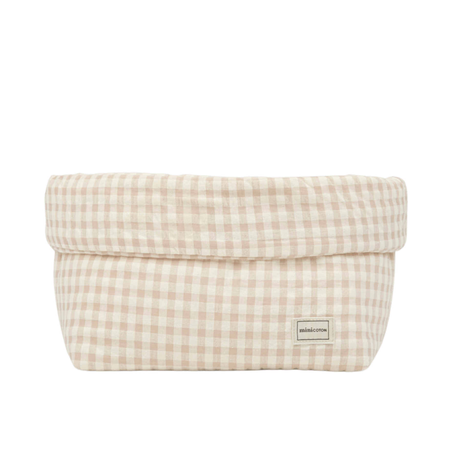 Ideal para ter todas as coisinhas do bebé no trocador arrumadinhas e à mão. Este organizador é espaçoso e dispõe de três espaços para fixar frascos de cremes. É um essencial no trocador ou na casa de banho. Além disso, tem uns cordões para poder fechá-lo e transportar como uma bolsa, e assim poder levá-lo com todas as suas coisas no fim de semana.