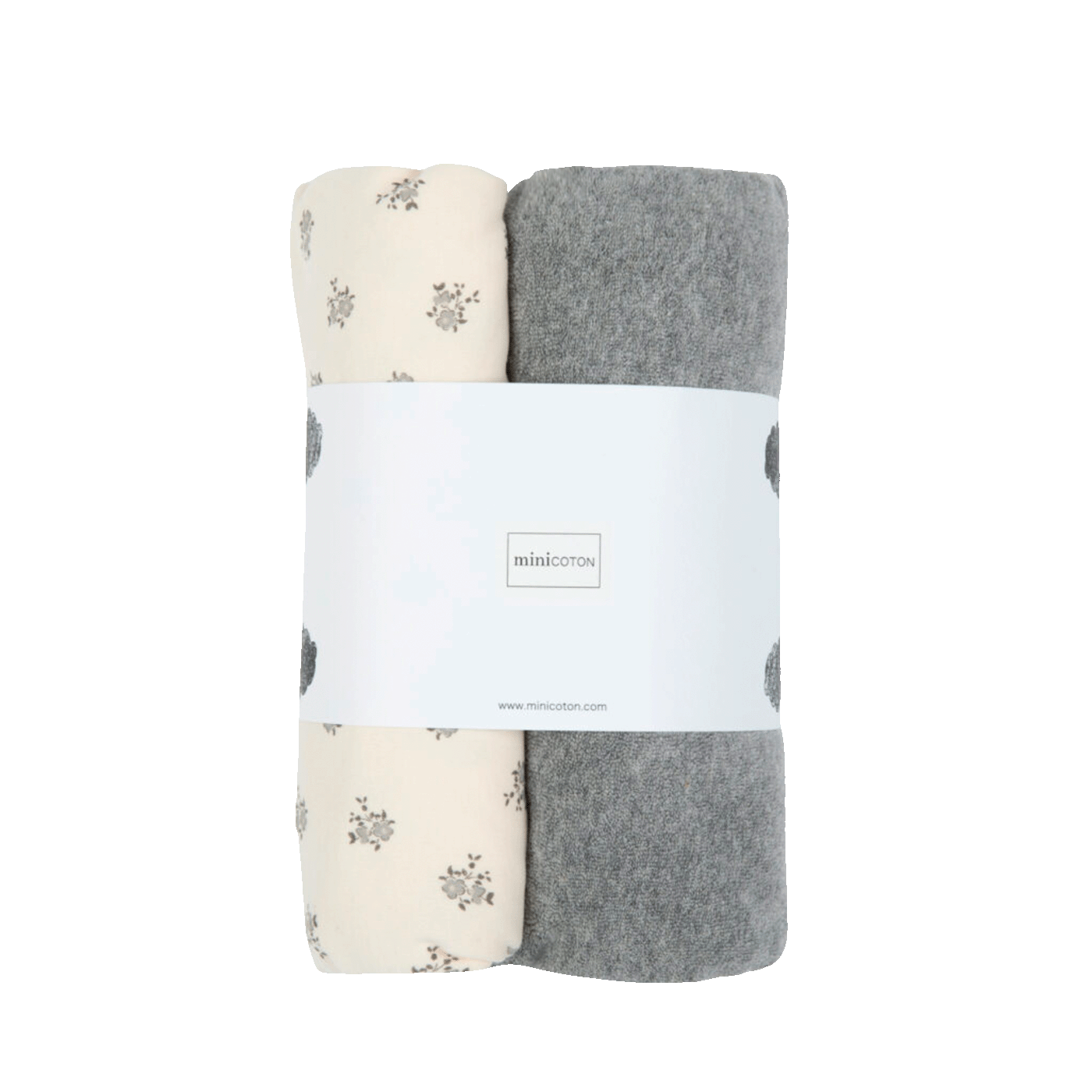 Pack de 2 capas para muda. Uma em malha de algodão com textura de rizo melange e outra com estampado Blossom Blue de toque pele de pêssego.