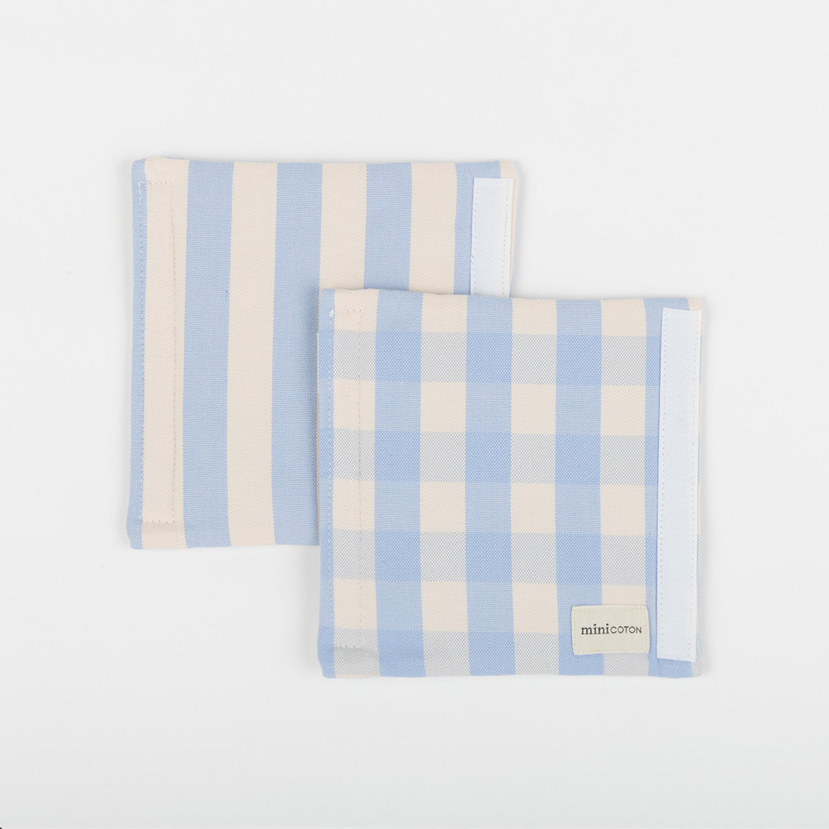 Reversíveis, de um lado às riscas e do outro em vichy de algodão 100%.
