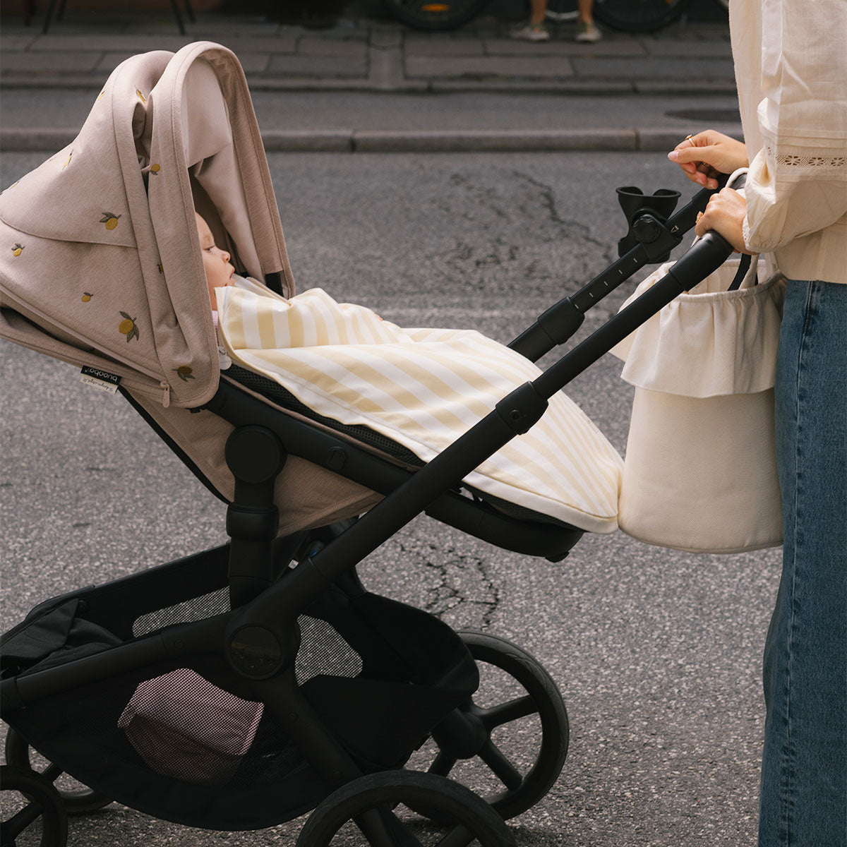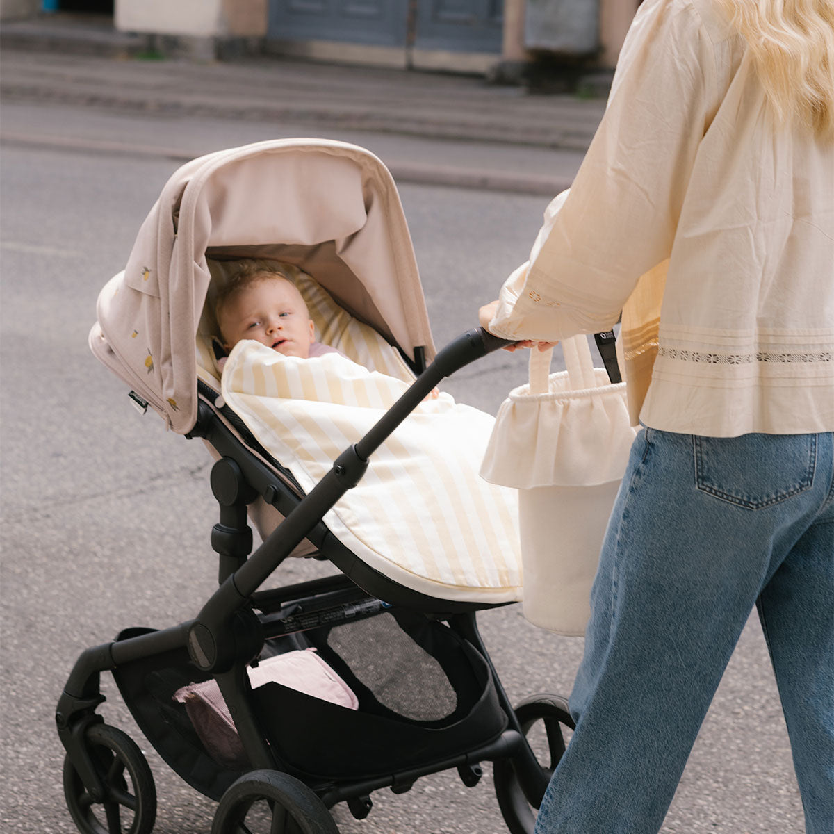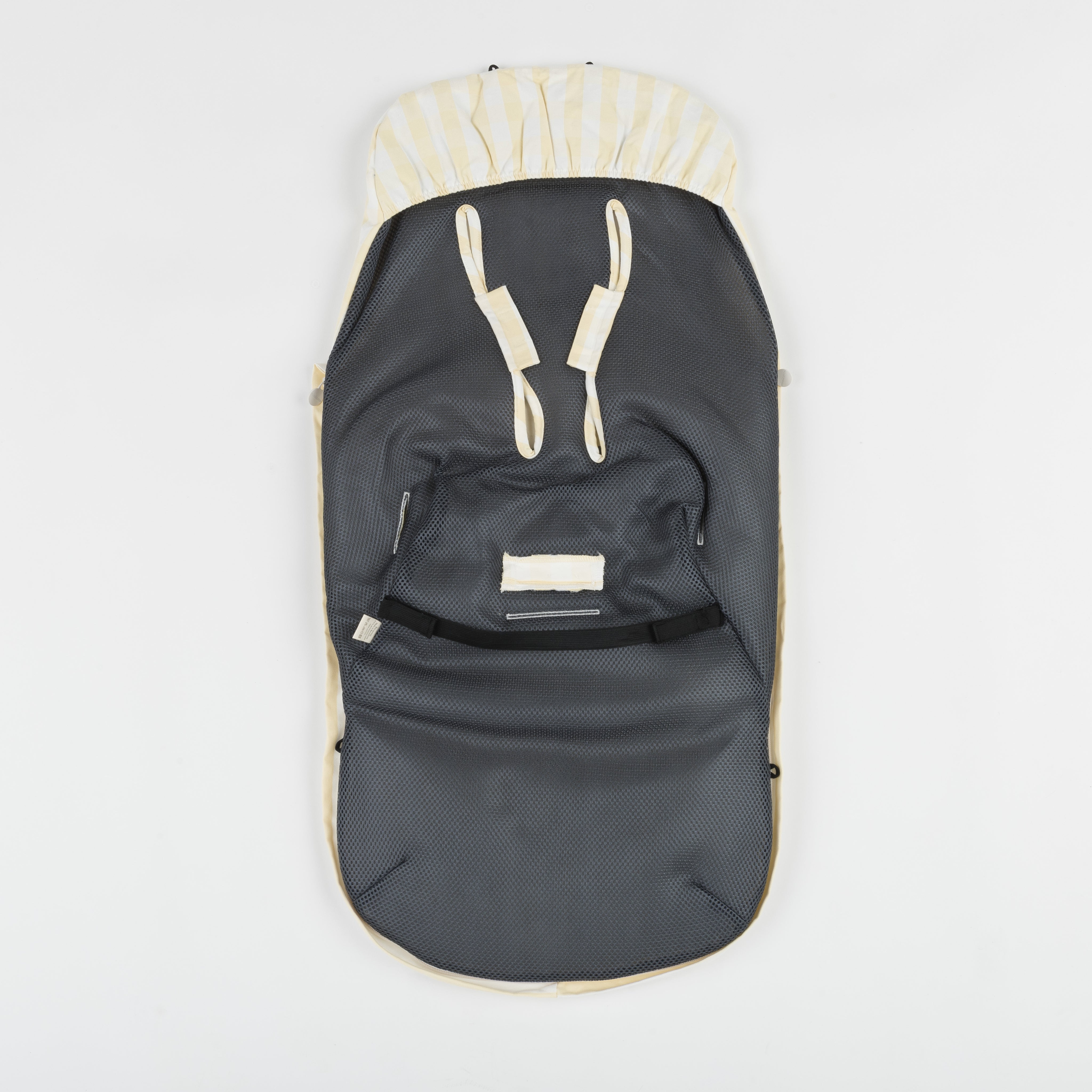 Este é o nosso saco universal para cadeira de passeio. É composto pela capa da cadeira, o saco e os seus dois enchimentos: um fino e outro mais grosso com efeito pluma, leves e fofos. Podem ser usados separadamente ou os dois juntos, dependendo das necessidades. O saco é desenfundável e todas as suas partes separam-se; assim, facilita a lavagem, pois não é necessário lavar tudo por completo, mas apenas o que for preciso. A parte interior do saco é de malha aveludada de algodão em cinza vigoré, sendo suave ao toque e resistente ao desgaste. Tecido exterior 100% algodão.