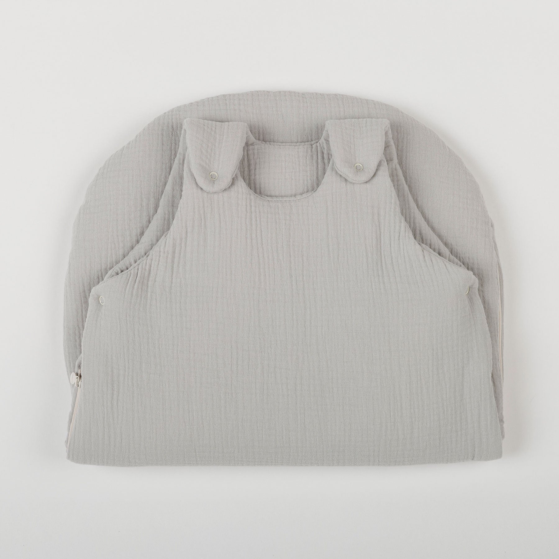 Saco de dormir acolchoado e de enchimento leve para o interior de casa. Evita que o bebé se descubra, conservando a temperatura e favorecendo o descanso.