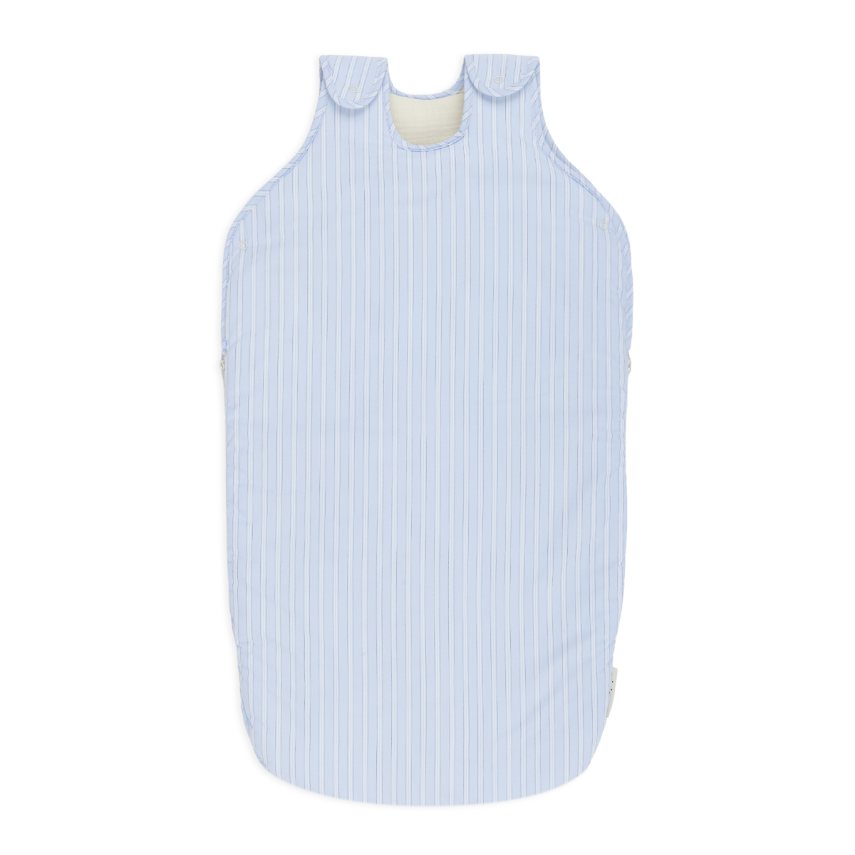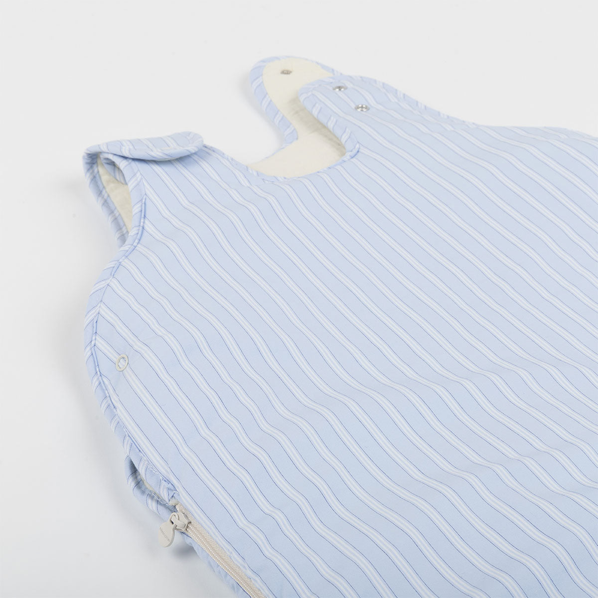 Saco de dormir acolchoado e de enchimento leve para o interior de casa. Evita que o bebé fique descoberto, conservando a temperatura e favorecendo o descanso.